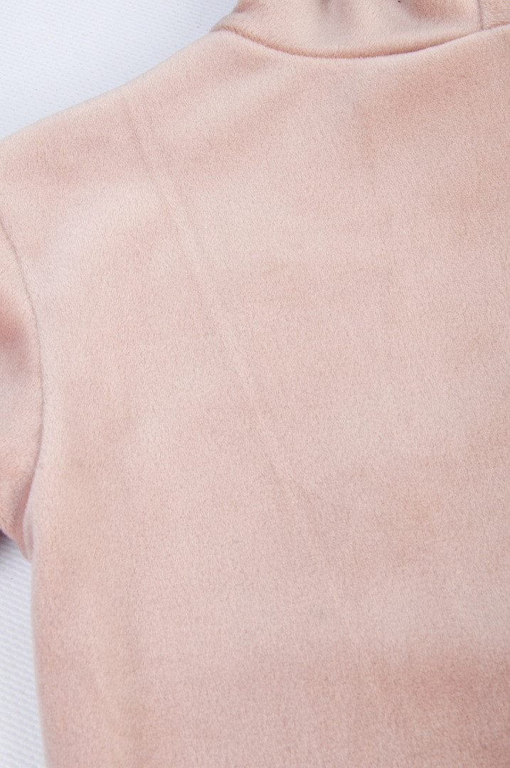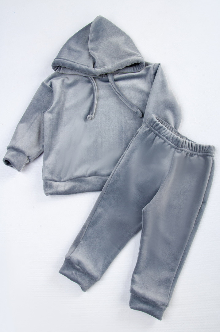Сучасний костюм для дівчат який виготовлено з велюру на хутрі. Рукава і низ худі на манжеті. В капюшон для зручності вставлений шнурок. Брюки з високою посадкою, до низу завужені. Модель підійде для прохолодного сезону весна-осінь. Добре підійде для прогулянок.