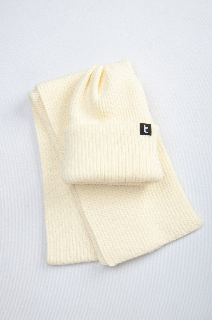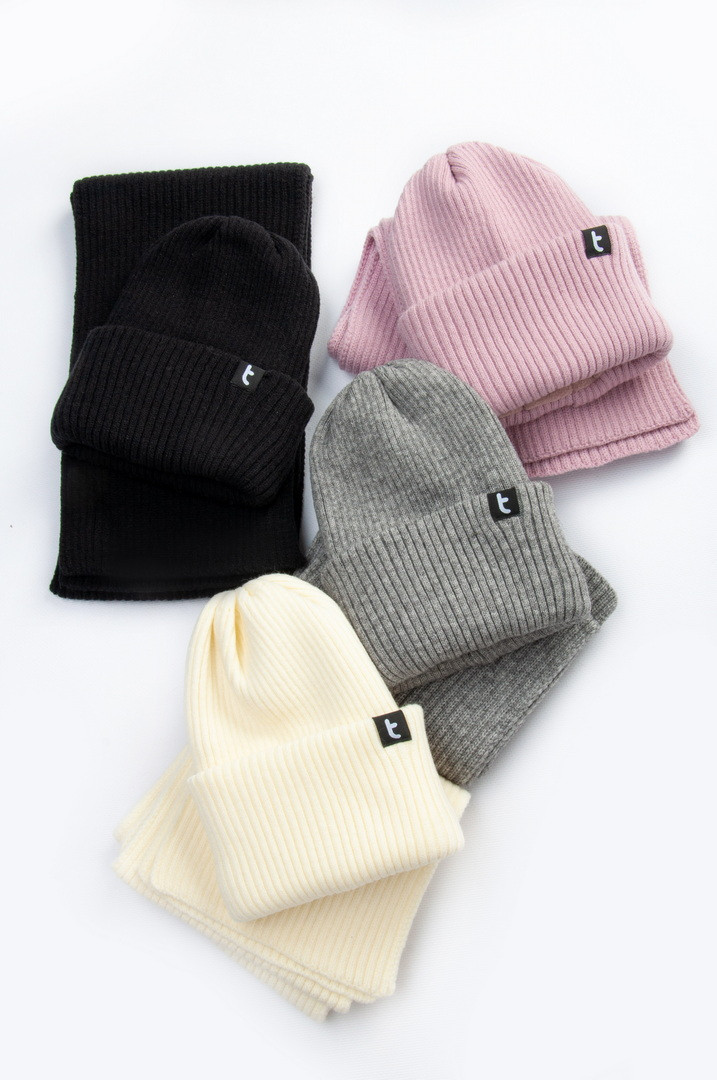 Тепленький в'язаний комплект, що включає шапку та шарф