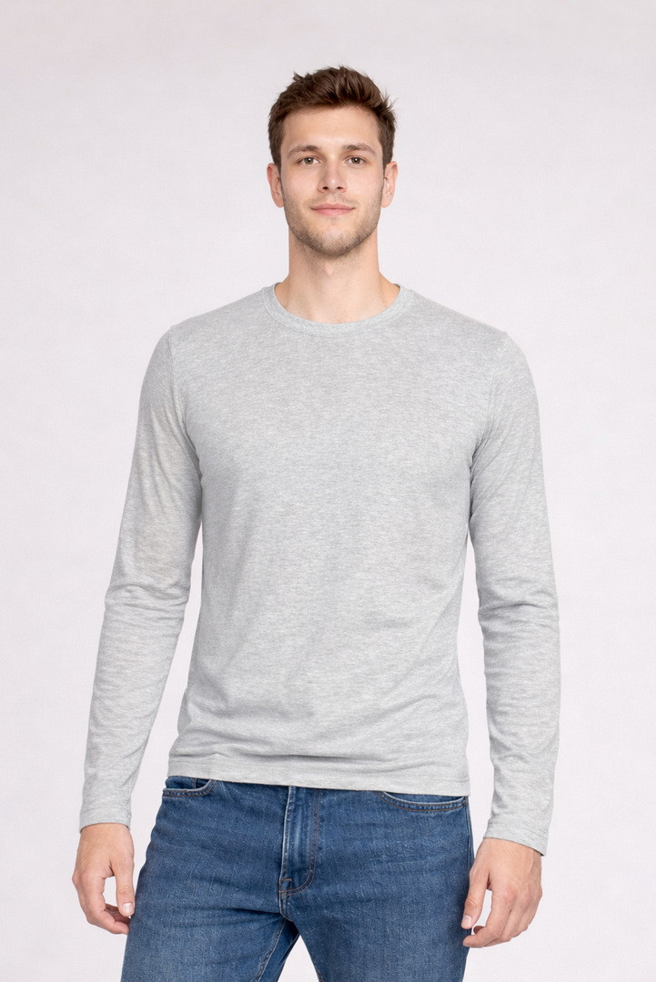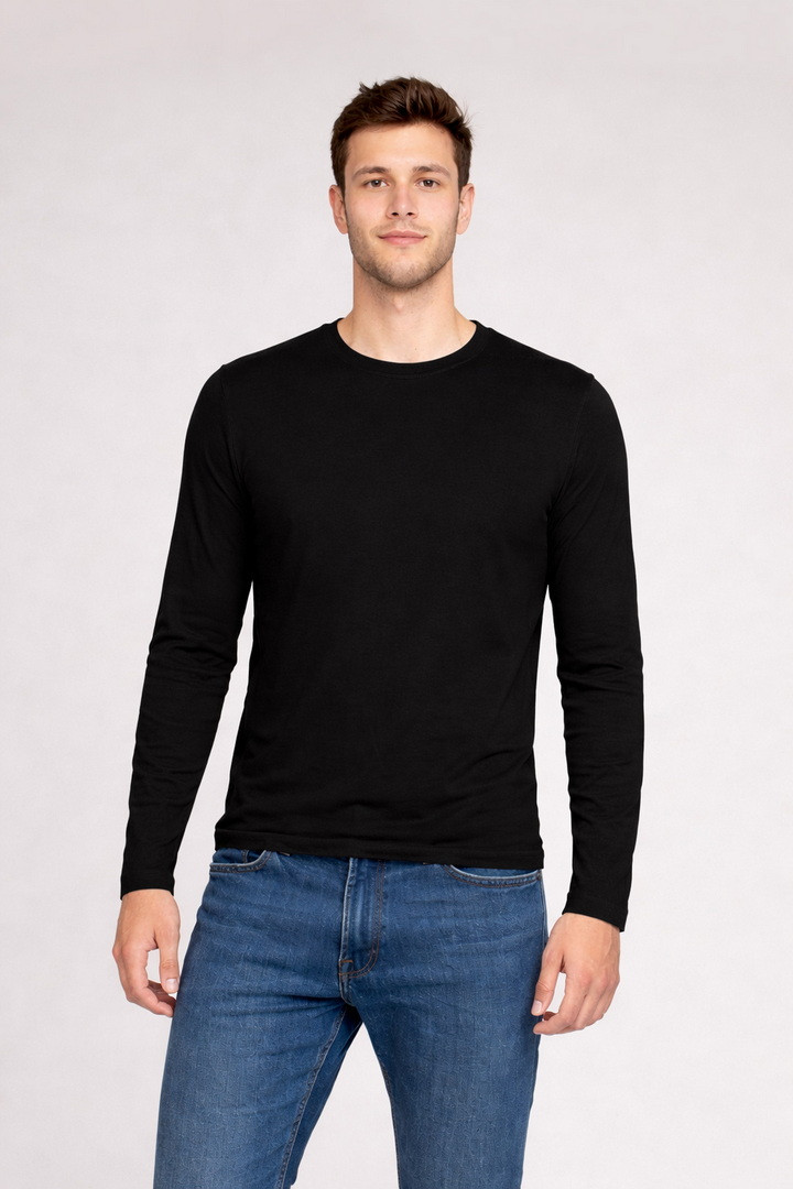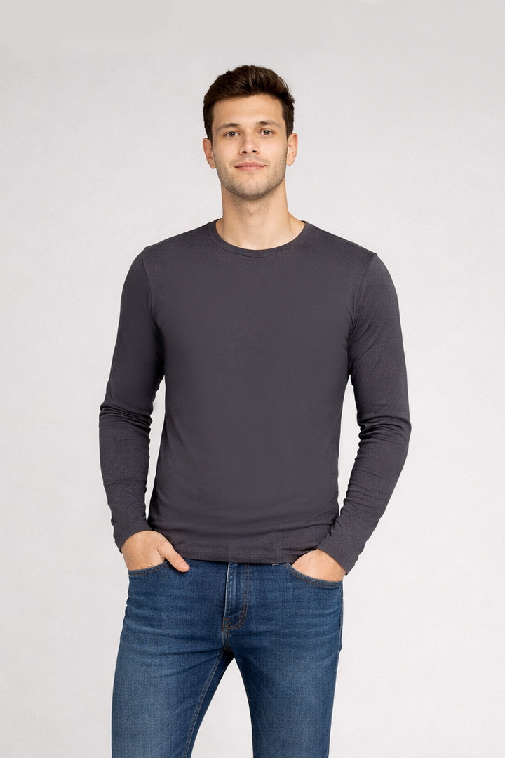 Стильний та комфортний чоловічий лонгслів із рібани — універсальна річ, яка стане незамінною у щоденному гардеробі. Виріб виготовлений із м’якої, еластичної трикотажної тканини, що забезпечує приємне прилягання до тіла. Рібана добре пропускає повітря, зберігає форму після прання та не деформується. Лонгслів має класичний прямий крій та довгі рукава, що гарантують комфорт. Округлий виріз горловини оформлений еластичною бейкою, яка акуратно сидить і не розтягується. Практичний, зносостійкий і приємний до тіла — цей лонгслів стане надійним вибором для тих, хто цінує якість і комфорт у кожній деталі.