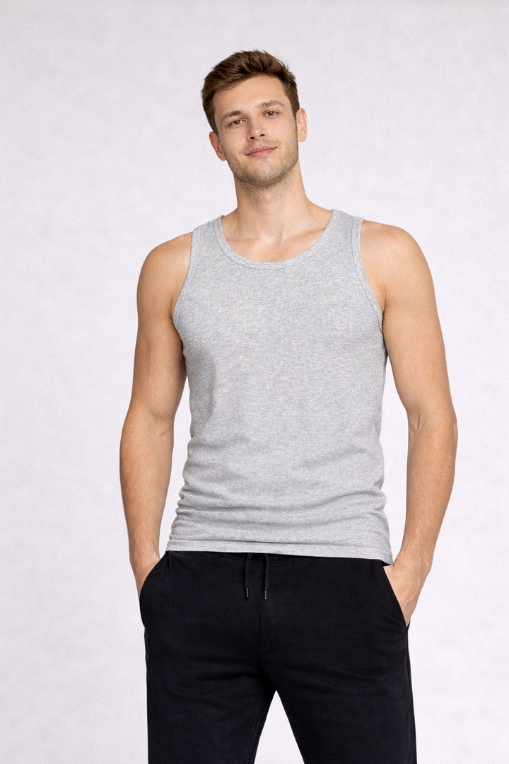Чоловіча майка з полотна рібана — це зручний та практичний елемент базового гардеробу, створений для максимального комфорту та щоденного використання. Майка виготовлена з високоякісної рібани, вона має природну еластичність, щільно прилягає до тіла та зберігає форму. Тканина приємна до шкіри, не викликає подразнень та забезпечує гарну повітропроникність. Завдяки еластичному трикотажу, виріб комфортно сідає по фігурі та підходить для будь-якого типу статури. Це універсальна модель, яка поєднує практичність, комфорт і базовий стиль, роблячи її необхідною в гардеробі кожного чоловіка.