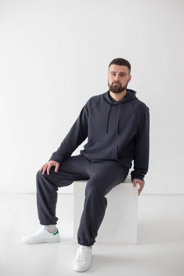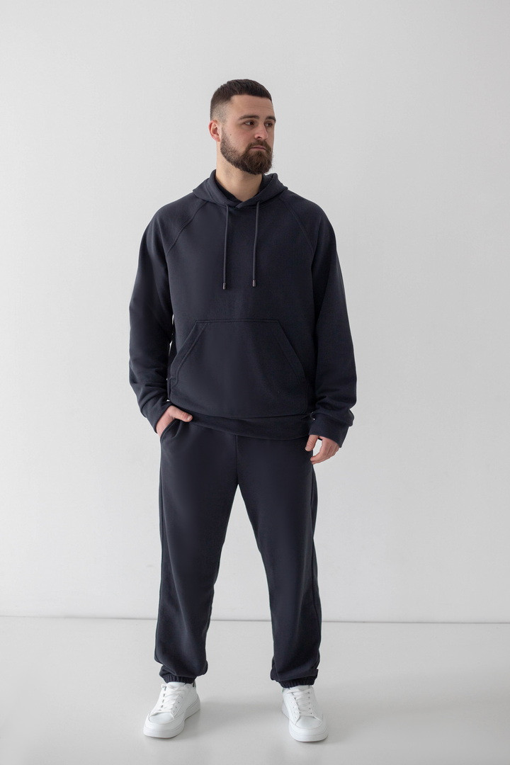 Цей чоловічий костюм — створений для життя в русі. З першого дотику відчувається різниця: тринитка петля пеньє м’яка, щільна та приємна до тіла, вона дихає, не парить і дарує абсолютний комфорт протягом усього дня. Матеріал виглядає охайно й дорого, не кошлатиться, не витягується та зберігає насичений колір. Саме завдяки цьому костюм довго залишається таким, ніби ти щойно дістав його з упаковки. Лаконічний дизайн підкреслює мужність і стиль без зайвих деталей. Худі з капюшоном додає практичності та характеру, а штани з комфортною посадкою ідеально сідають по фігурі. Костюм, який хочеться носити постійно, бо він зручний, стильний і надійний. Одягай — і відчувай впевненість у кожному русі.