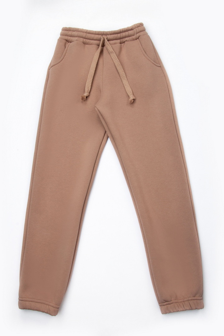 Стильні та зручні штани для дівчат, виготовлені з якісного триниткового футера з начосом — ідеальний вибір для прохолодної погоди. Тепла м’яка тканина з внутрішнім начосом дарує комфорт і затишок протягом усього дня, не викликаючи подразнень. Модель має практичний вільний крій, що робить штани чудовим варіантом. Пояс на еластичній резинці забезпечує надійну та комфортну посадку, а резинка по низу додаює акуратного вигляду та допомагає зберегти тепло. Це універсальна, практична та тепла річ, яка стане улюбленою в гардеробі кожної дівчини.