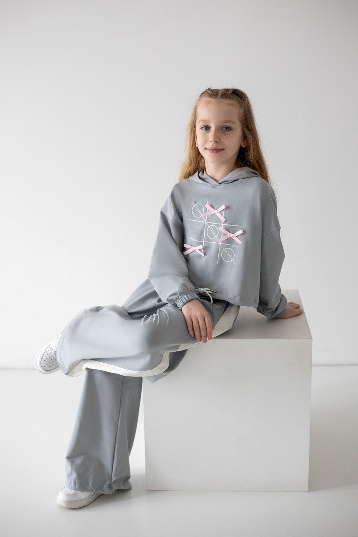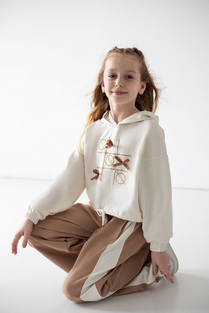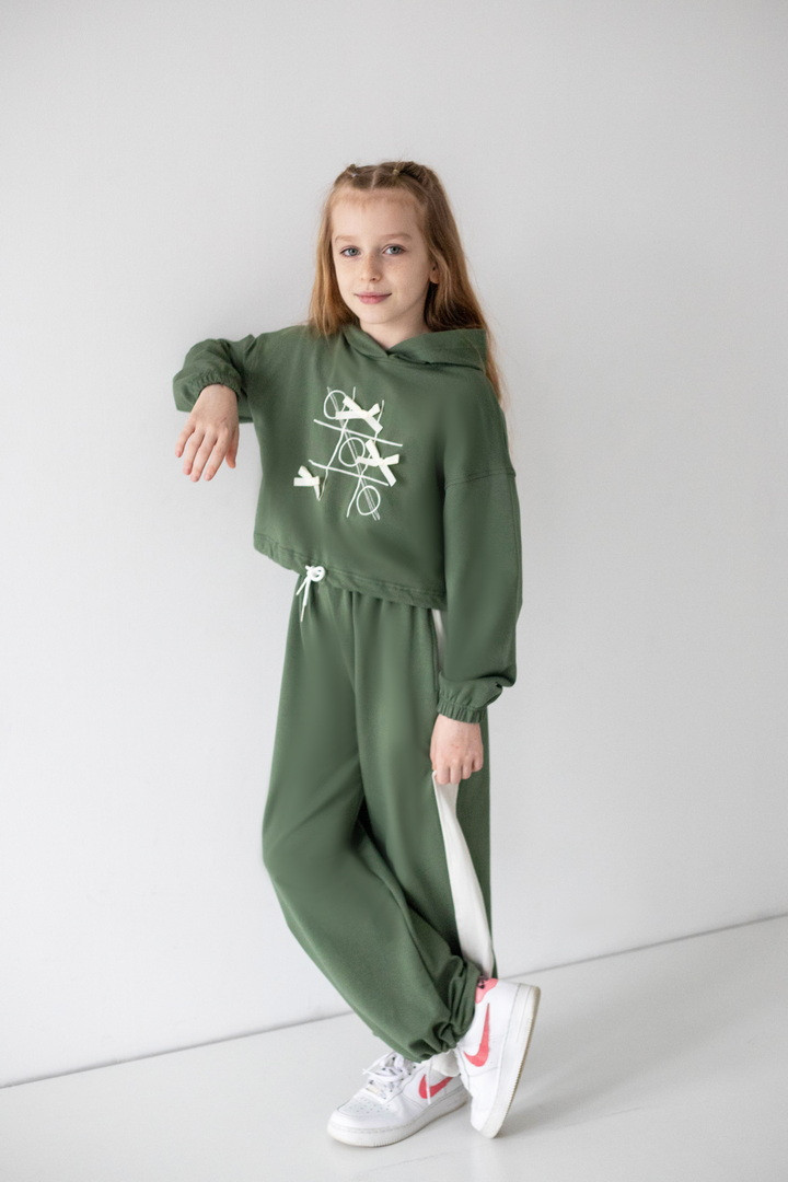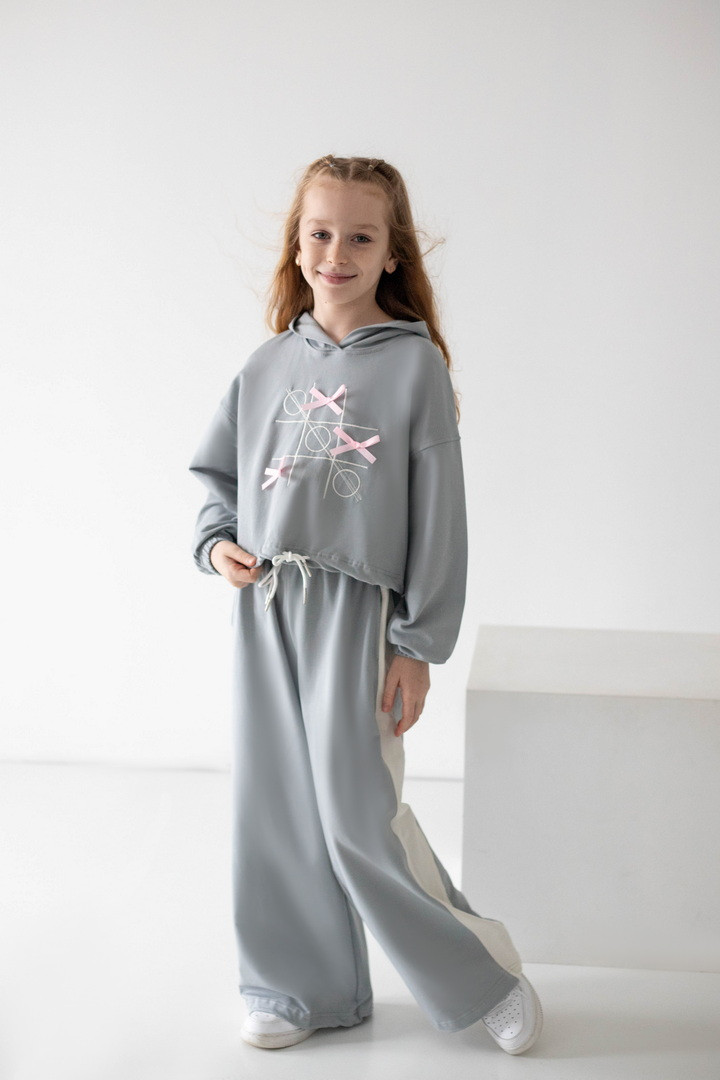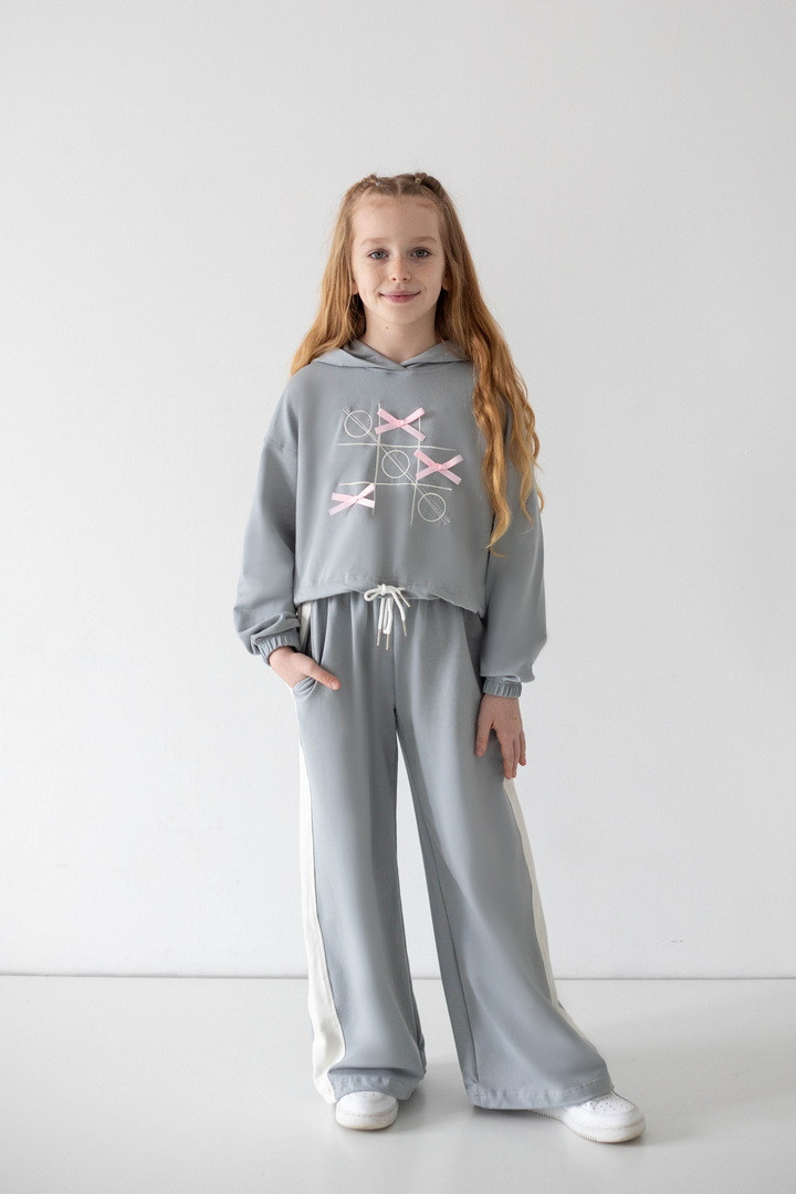 Ця модель створена для дівчат, які люблять свободу і сучасний стиль. Штани виконані з якісного двониткового футера, що має м’яку, гладку лицьову поверхню та приємну до тіла внутрішню структуру без начосу. Матеріал еластичний і чудово зберігає форму. Вільний крій красиво підкреслює ходу, а контрастні лампаси додають динаміки та візуально витягують силует. Головна перевага — фіксатори внизу штанин, які дозволяють змінювати ширину низу: носіть їх вільними для relaxed-образу або злегка затягнутими для більш спортивного акценту. Це не просто декор, а функціональна деталь, що додає практичності та характеру. Пояс на м’якій резинці зі шнурком забезпечує точну посадку по фігурі — без дискомфорту та сповзання. Ці штани виглядають сучасно, відчуваються максимально комфортно та стають універсальною річчю гардеробу.