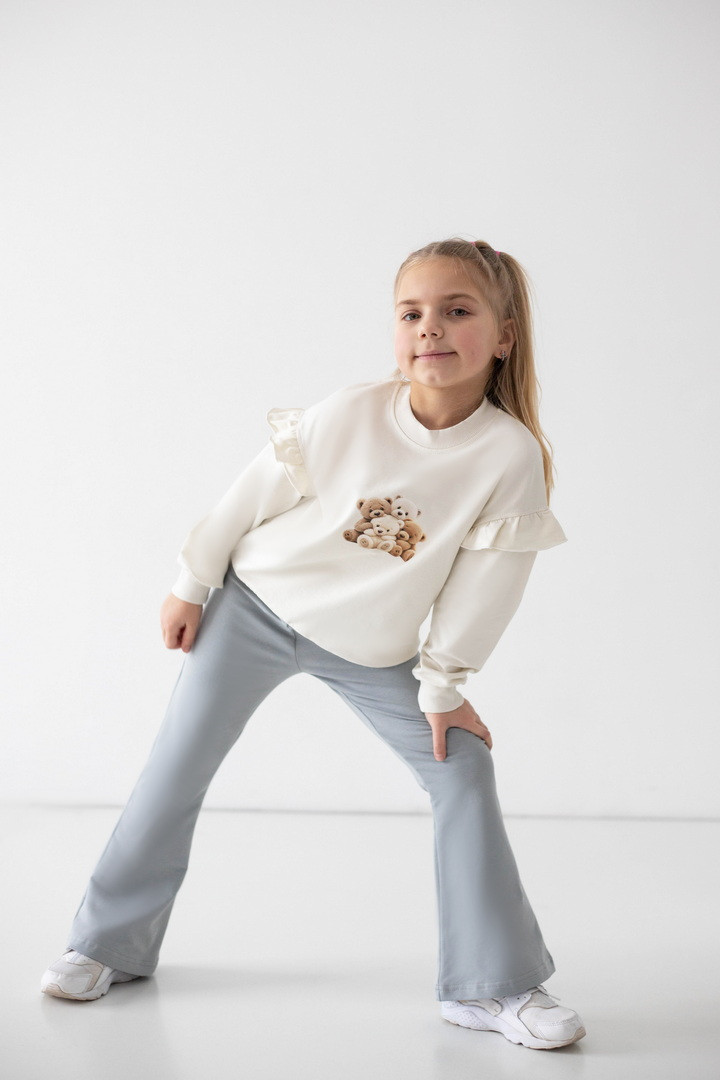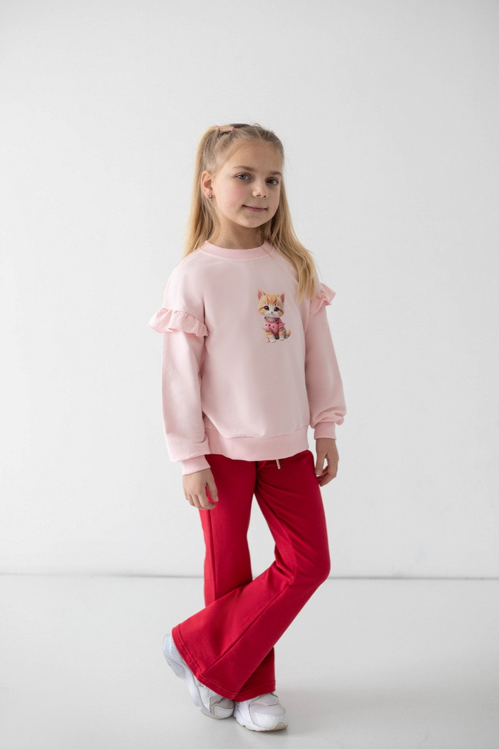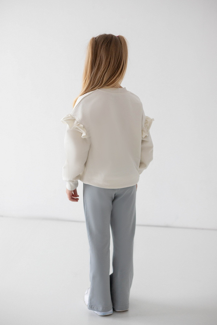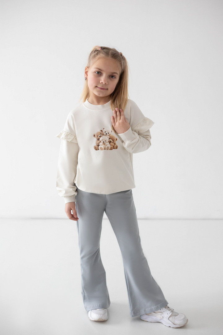 Стильні та зручні штани для дівчаток — виготовлені з якісного двониткового футера. Полотно щільне, м’яке та зносостійке, яке добре тримає форму, не кошлатиться та приємне до тіла. Матеріал забезпечує комфорт упродовж дня, дозволяє шкірі дихати та підходить для носіння в міжсезоння та прохолодну погоду. Модель має зручний пояс на резинці, що не здавлює талію та забезпечує ідеальну посадку. Прямий, злегка вільний крій та акуратні шви, лаконічно підкреслюють дизайн цих штанів. Практичні, універсальні та стильні — ці штани стануть базовим елементом гардероба кожної дівчинки, поєднуючи комфорт, якість і сучасний вигляд.