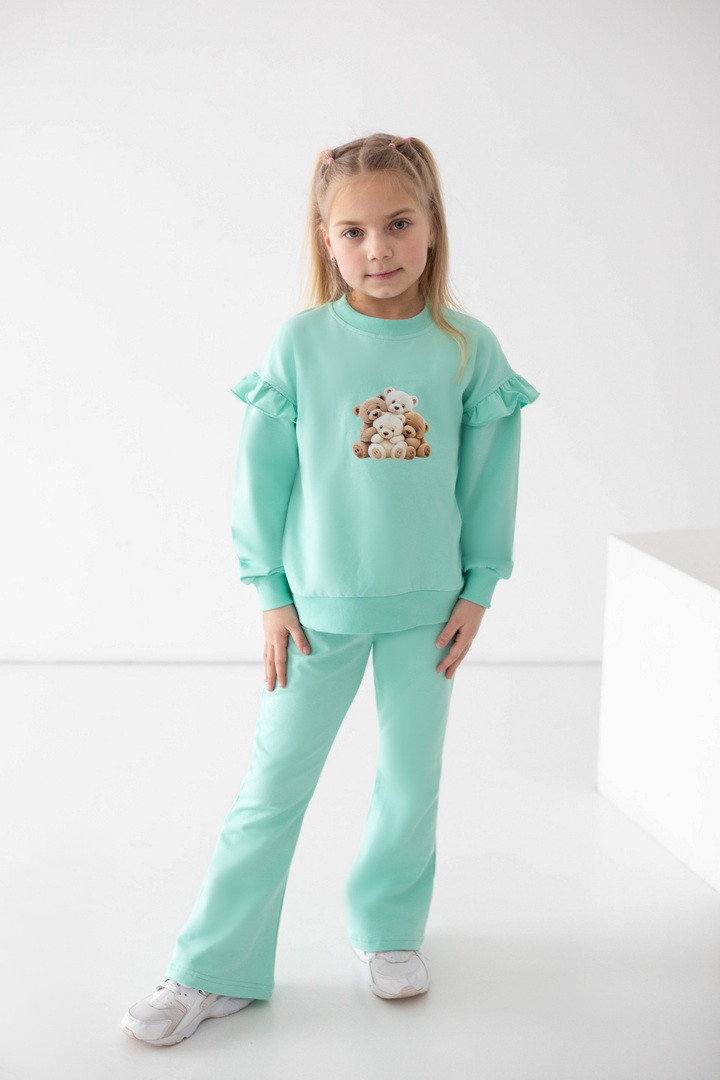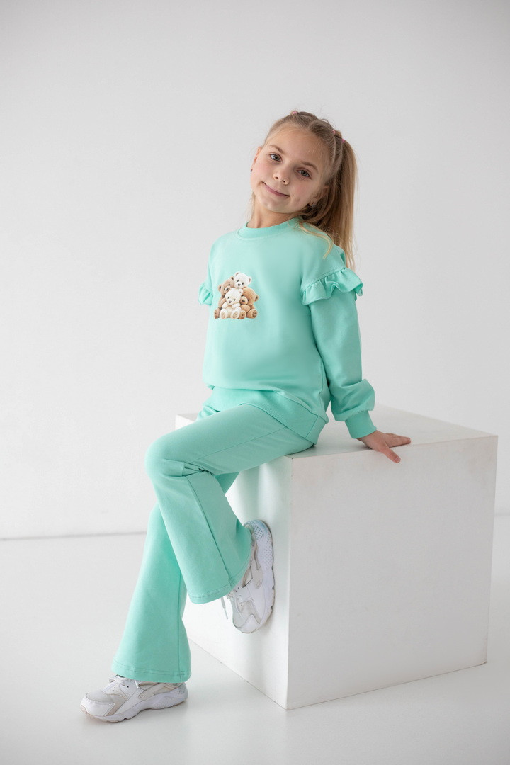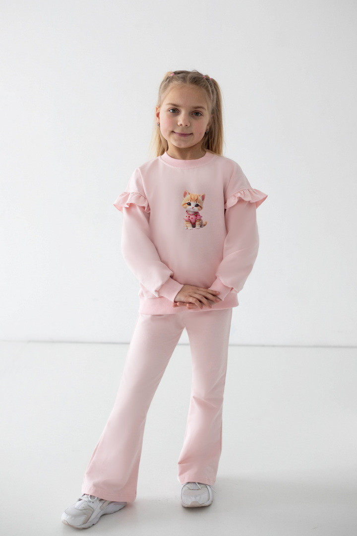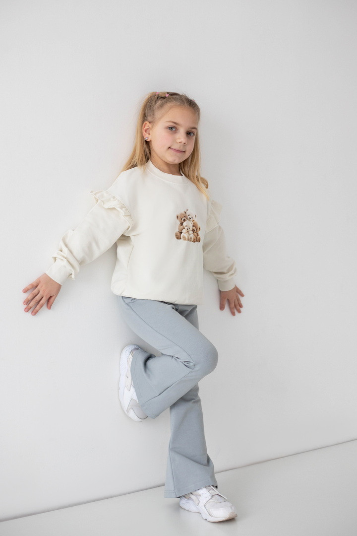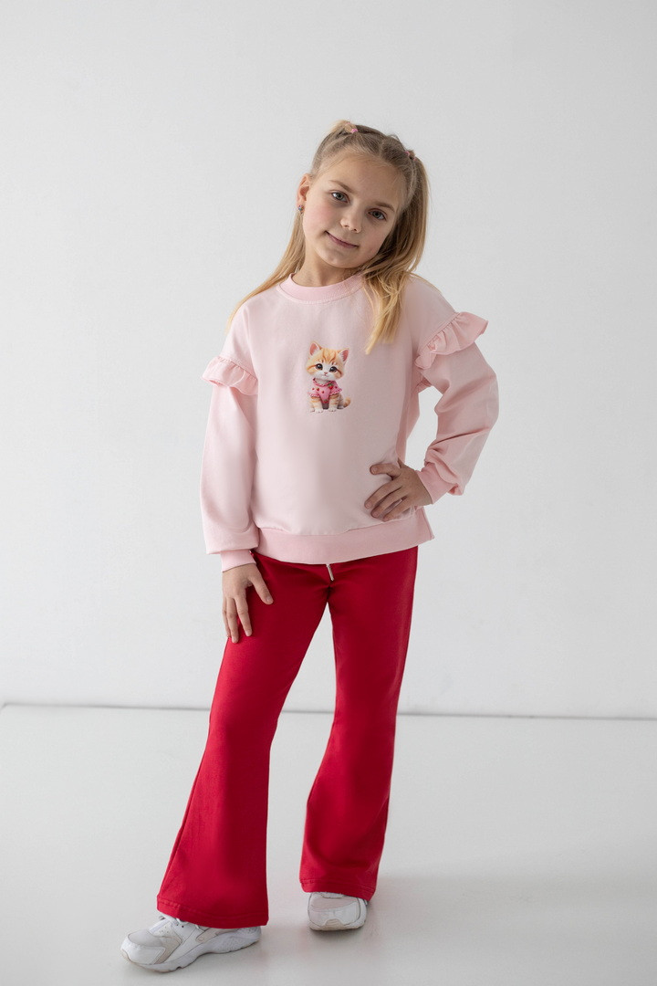 Стильні та зручні штани для дівчаток — виготовлені з якісного двониткового футера. Полотно щільне, м’яке та зносостійке, яке добре тримає форму, не кошлатиться та приємне до тіла. Матеріал забезпечує комфорт упродовж дня, дозволяє шкірі дихати та підходить для носіння в міжсезоння та прохолодну погоду. Модель має зручний пояс на резинці, що не здавлює талію та забезпечує ідеальну посадку. Прямий, злегка вільний крій та акуратні шви, лаконічно підкреслюють дизайн цих штанів. Практичні, універсальні та стильні — ці штани стануть базовим елементом гардероба кожної дівчинки, поєднуючи комфорт, якість і сучасний вигляд.