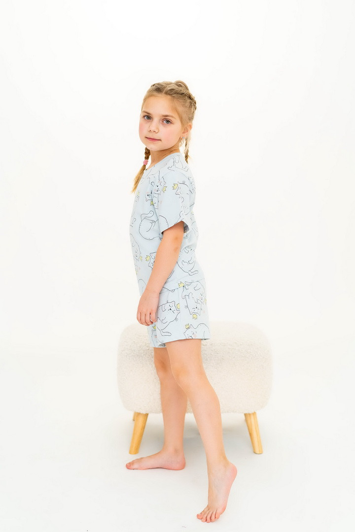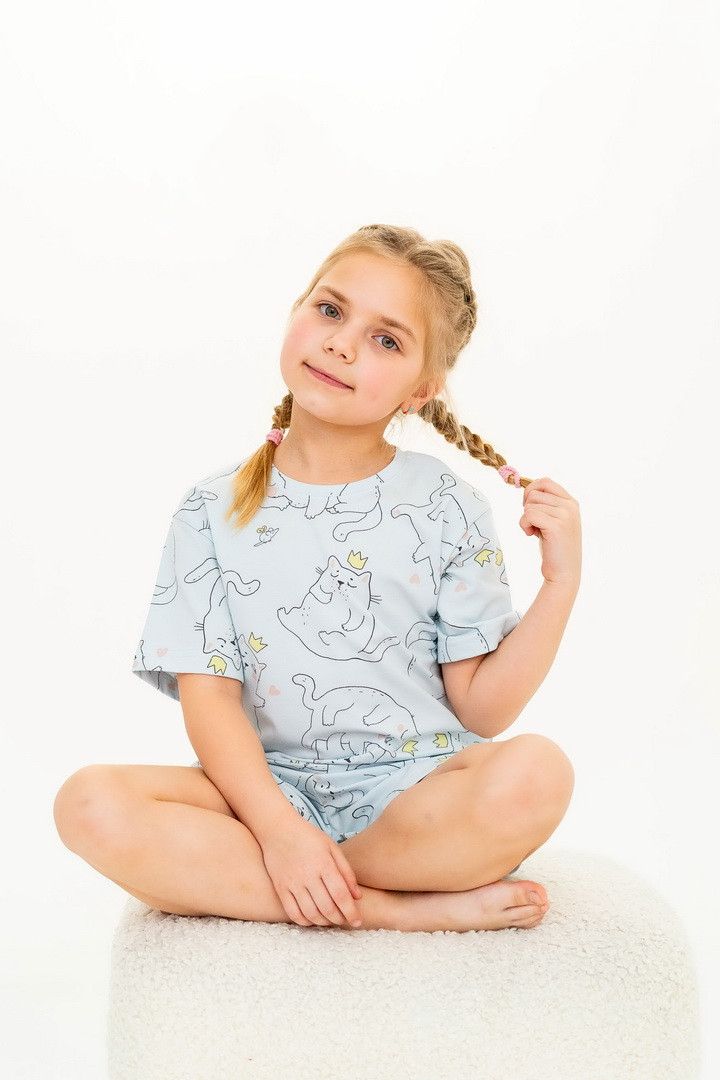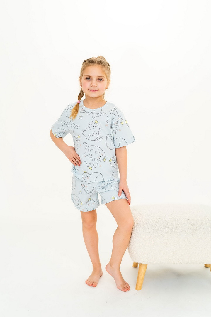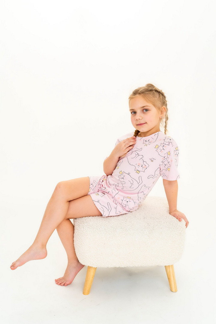 Ця піжама для дівчаток зі стрейч-куліру пеньє створена для тих моментів, коли дім наповнюється теплом, а вечір перетворюється на казку. Вона ніжно огортає тіло — дитина спить спокійно, а батьки впевнені у комфорті. Комплект складається з легкої футболки та зручних шортиків із м’якою посадкою. Тканина пеньє — це якісна бавовна з ідеально гладкою поверхнею, яка приємна навіть для найчутливішої шкіри. Завдяки еластану, піжама добре тягнеться та не втрачає форму. Ніжний, милий принт додає настрою та робить піжаму улюбленою річчю — саме тією, яку дитина хоче вдягати знову і знову. Лаконічний дизайн дозволяє носити комплект не лише для сну, а й для домашніх ігор чи ранкових обіймів. Також є можливість придбати схожу модель жіночої піжами для створення Family look.