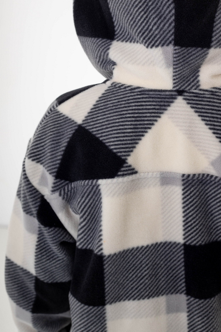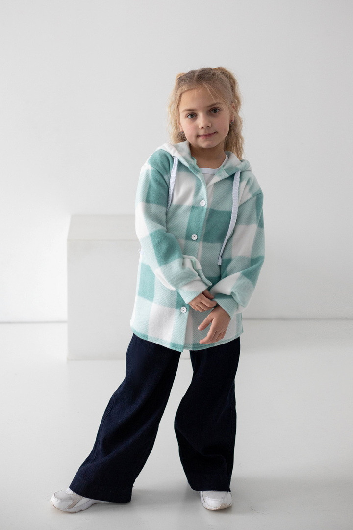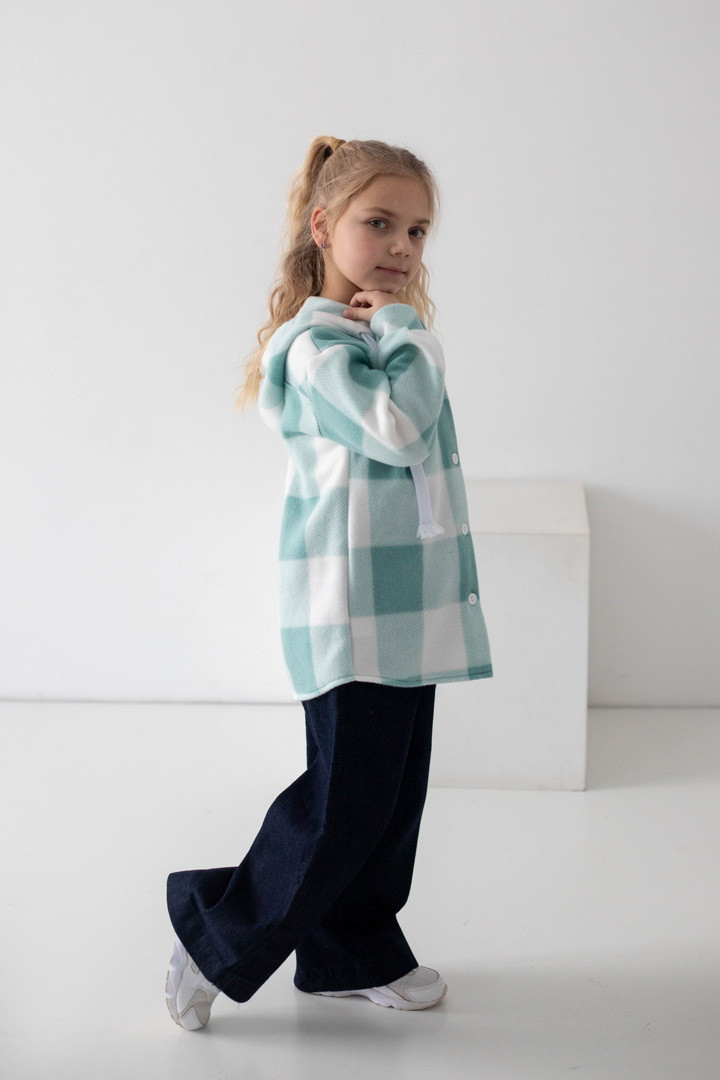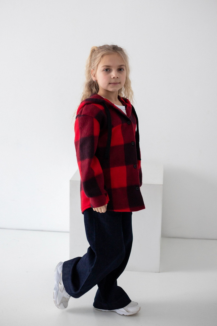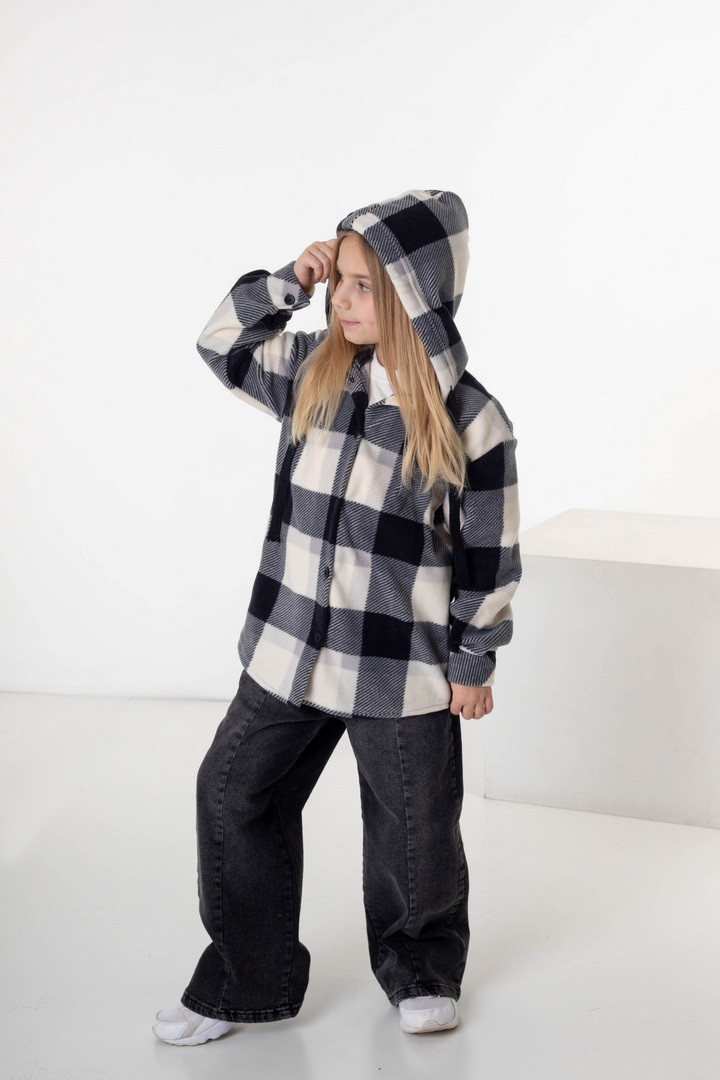 Флісова сорочка для дівчат — це стильне та надзвичайно комфортне рішення для прохолодної пори року. Модель поєднує в собі зручність куртки та легкість сорочки, що робить її універсальною. Виготовлена з флісу — м’якого, приємного до тіла полотна, яке чудово зберігає тепло. Сорочка має вільний крій, застібку на ґудзики, що забезпечує легке одягання, а капюшон додає практичності та захисту від прохолоди й вітру. Класичний клітинний дизайн виглядає стильно та сучасно. Флісова сорочка — практична, тепла та модна.