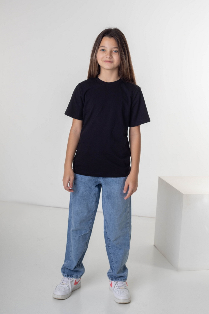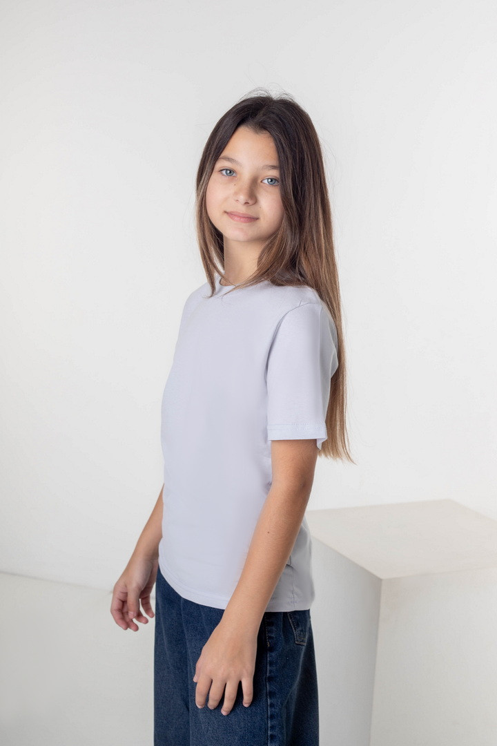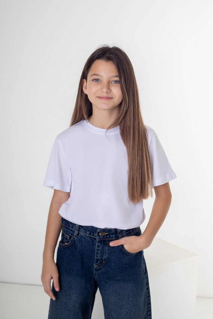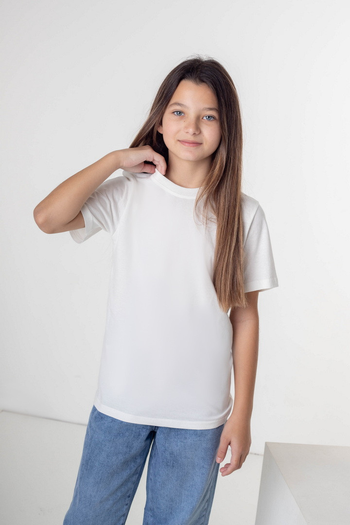 Футболка для дівчат із м’якого та приємного до тіла куліра — це універсальна річ на кожен день. Виготовлена з якісного натурального полотна, воно забезпечує відмінну повітропроникність і комфорт у будь-яку пору року. Модель має класичний прямий крій, короткі рукава та круглий виріз горловини, що робить її зручною для активного відпочинку, школи чи повсякденних прогулянок. Полотно добре тримає форму, не витягується після прання та зберігає охайний вигляд тривалий час. Ідеальний вибір для гардероба дівчат.