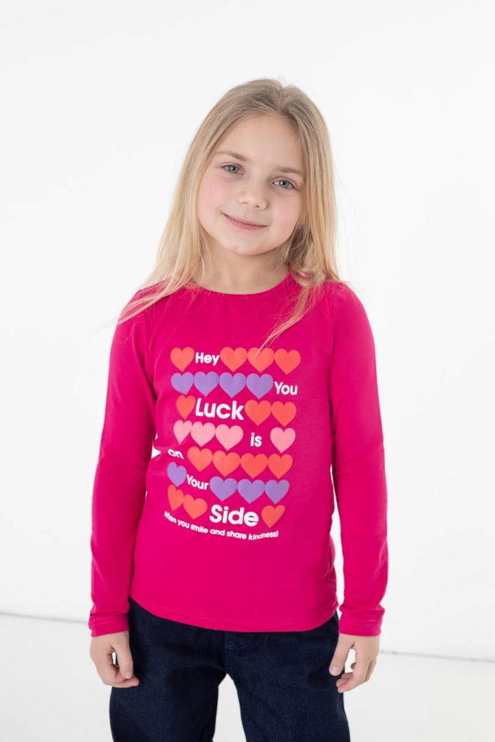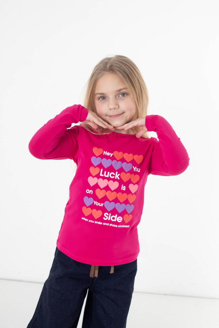 Лонгслів, у який хочеться вдягатися знову і знову. Легкий, м’який і надзвичайно приємний до тіла, він створений для активних дівчаток, які люблять рух, комфорт і яскраві деталі в образі. Стрейч-кулір пеньє дарує ідеальний баланс між натуральністю та еластичністю: тканина ніжно огортає, дихає та адаптується до кожного руху дитини. Продуманий крій, забезпечує зручну посадку без зайвого об’єму, а довгі рукава захищають у прохолодну погоду. Округла горловина виглядає охайно та не втрачає форму. Родзинкою моделі є яскравий принт, який додає настрою, індивідуальності та робить лонгслів улюбленою річчю в гардеробі. Матеріал не скочується, не розтягується й зберігає насиченість кольору, що особливо важливо для дитячого одягу. Це універсальна річ, яка виглядає стильно, гарно і дарує комфорт щодня.