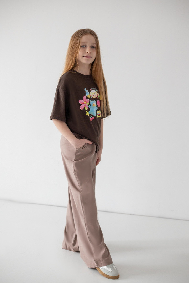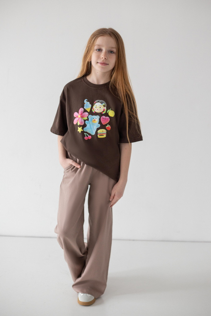Футболка для дівчат із куліру — це поєднання сучасного стилю, комфорту та якості, яку відчуваєш з першого дотику. Вона створена для активних, творчих і впевнених у собі дівчат, які хочуть виглядати сучасно. Кулір високої якості має гладку, м’яку текстуру, добре пропускає повітря та забезпечує максимальний комфорт навіть у теплу погоду. Вільний силует із подовженою лінією плеча формує модний oversize-образ, який виглядає стильно в будь-якій ситуації. Акцентний принт додає характеру та індивідуальності, перетворюючи базову річ на повноцінний елемент трендового гардероба. Футболка стане улюбленою річчю для тих, хто цінує комфорт без компромісів зі стилем.