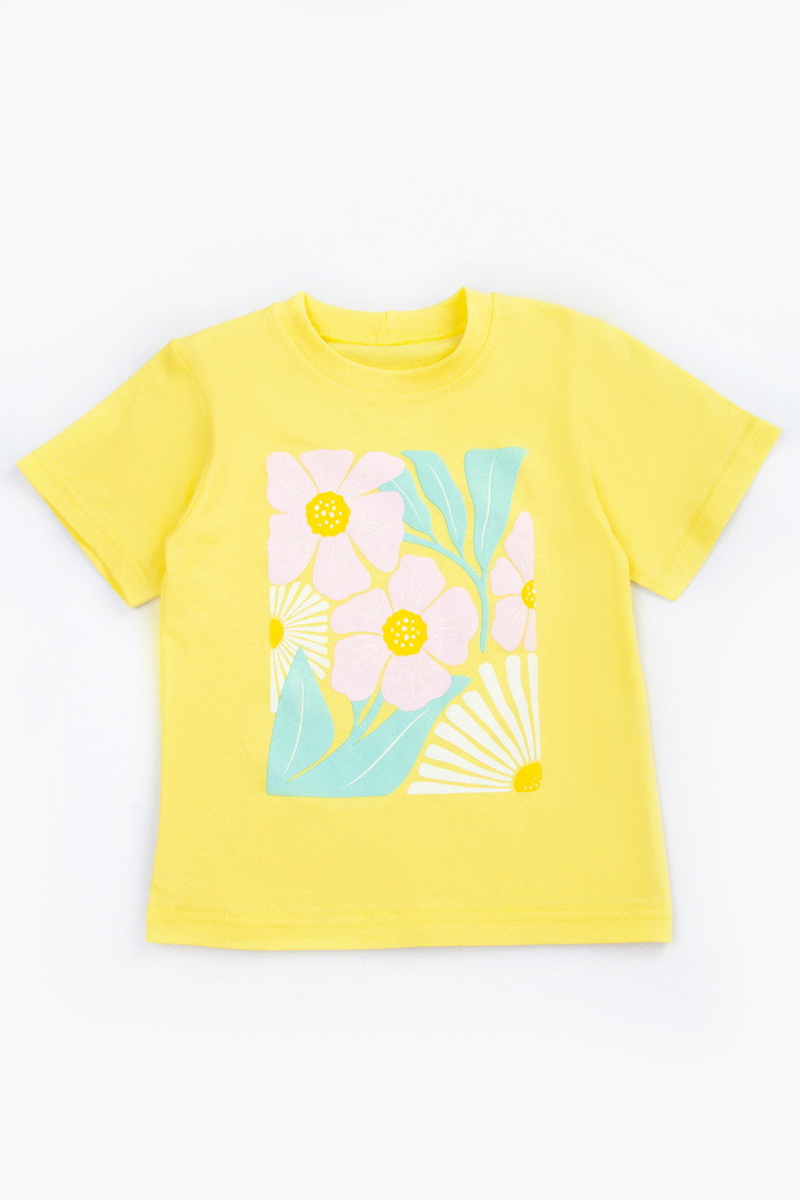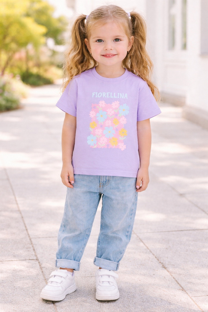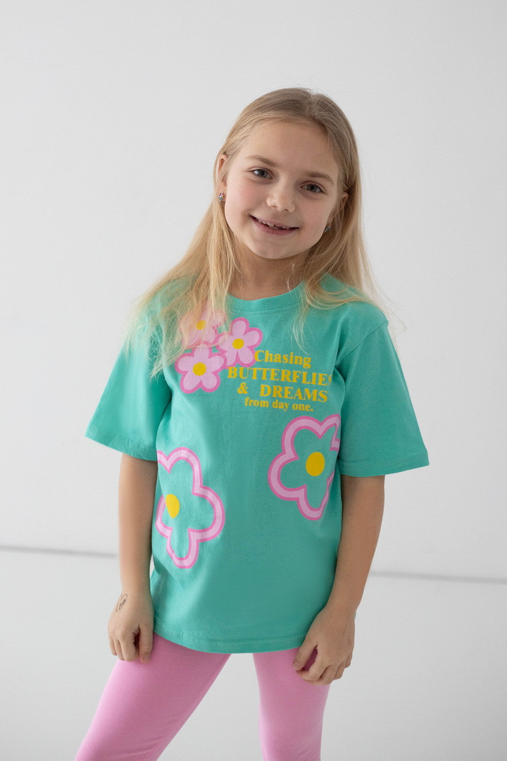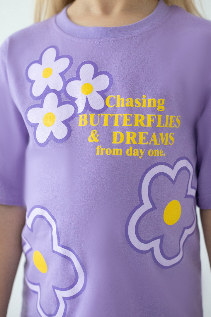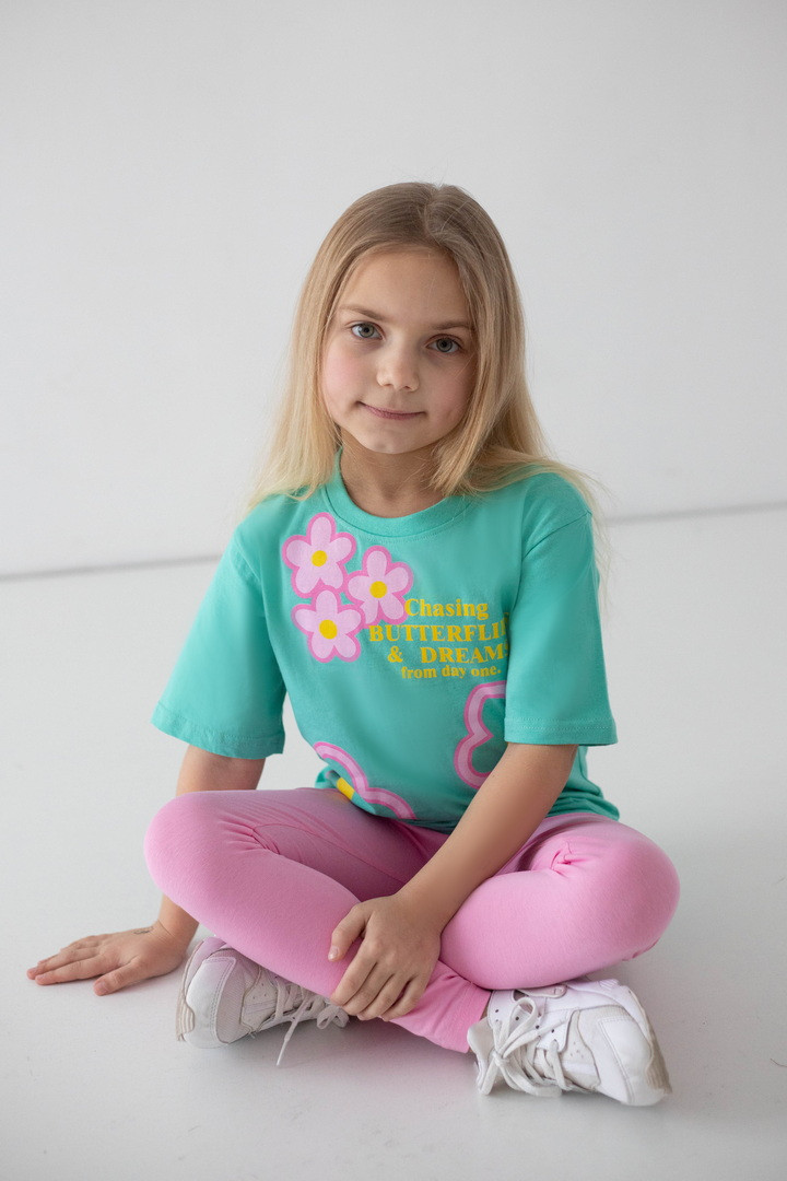 Ця футболка створена для маленьких мрійниць, які люблять комфорт і красу в кожній деталі. Виготовлена з м’якого натурального куліру, вона ніжно огортає тіло, дозволяючи шкірі дихати навіть у найтепліші дні. Тканина легка, приємна на дотик та ідеально підходить для активного щоденного життя дитини. Модель має зручний прямий крій і дарує повну свободу під час ігор, прогулянок та веселих пригод. Короткі рукава та акуратна кругла горловина забезпечують максимальний комфорт, а милий яскравий принт додає образу чарівності й гарного настрою. Вона стане улюбленою річчю в гардеробі дівчинки та подарує відчуття легкості й затишку з першого дотику.