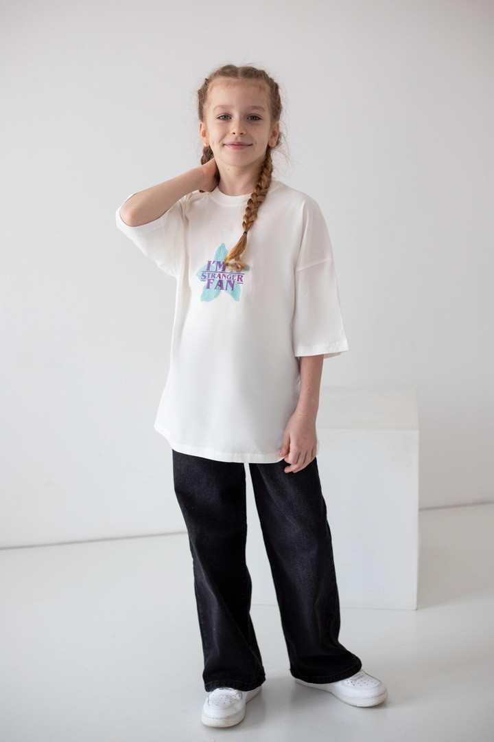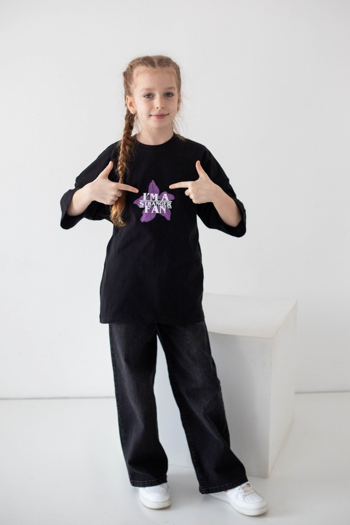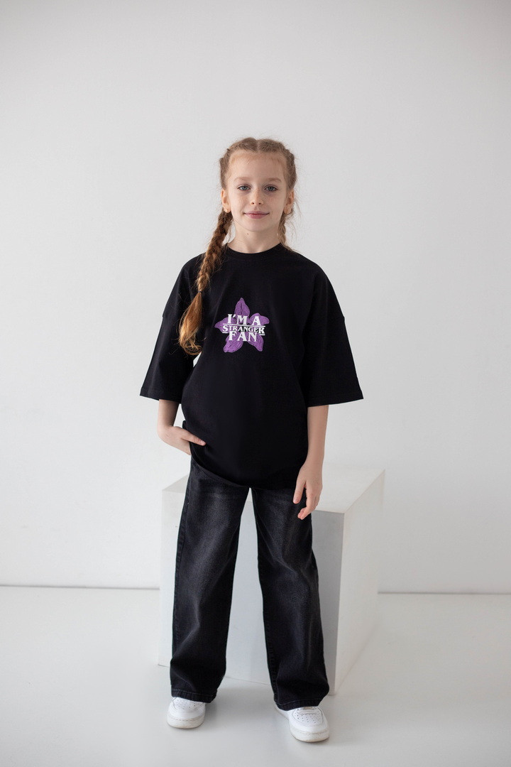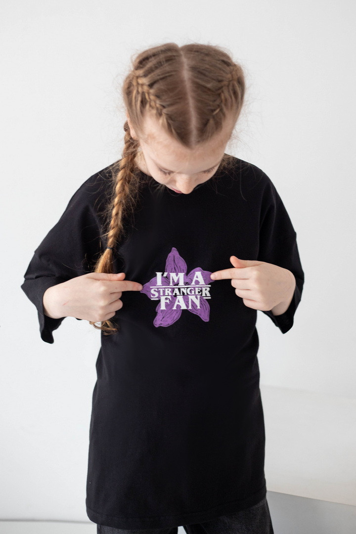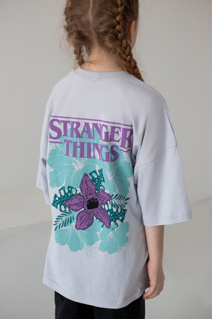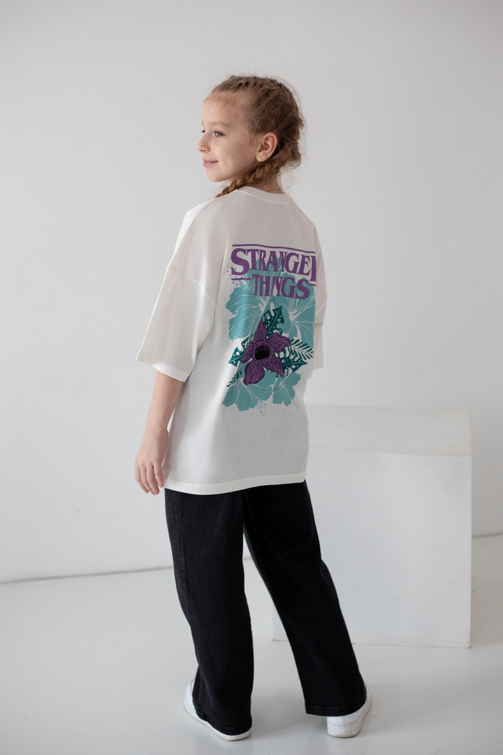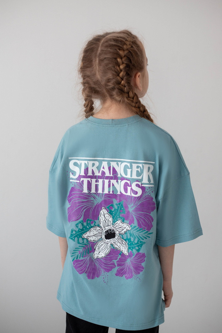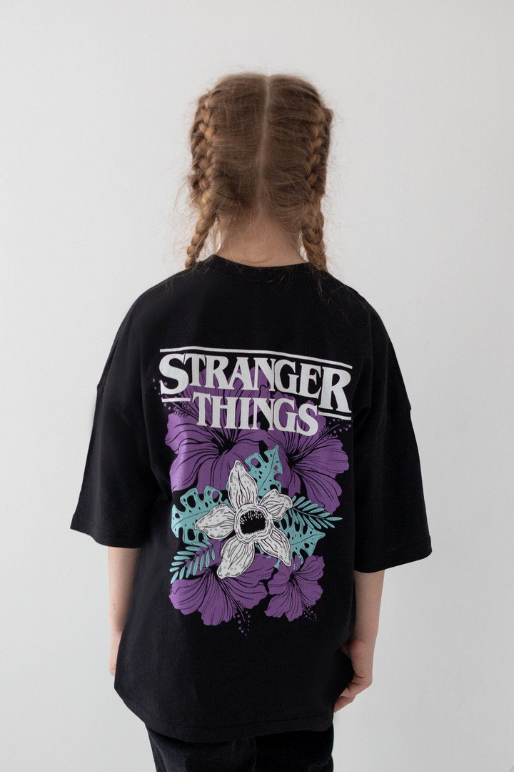Стильна футболка для дівчат, натхненна культовим серіалом «Дивні дива» (Stranger Things), стане яскравим акцентом у сучасному гардеробі. Модель виготовлена з якісного куліру — натуральної, легкої та дихаючої бавовняної тканини, яка забезпечує комфорт протягом усього дня. Футболка має актуальний вільний крій і чудово підходить для активного способу життя. Дизайн продуманий до деталей: стильний принт спереду гармонійно доповнює ефектну ілюстрацію на спинці з символікою серіалу «Дивні дива», створюючи трендовий образ. Такий дизайн виглядає модно та дозволяє дівчатам виразити індивідуальність. Матеріал добре тримає форму, не деформується та зберігає насиченість кольорів. Ідеальний вибір для теплих прогулянок, щасливих моментів і де кожна деталь створена з любов’ю.