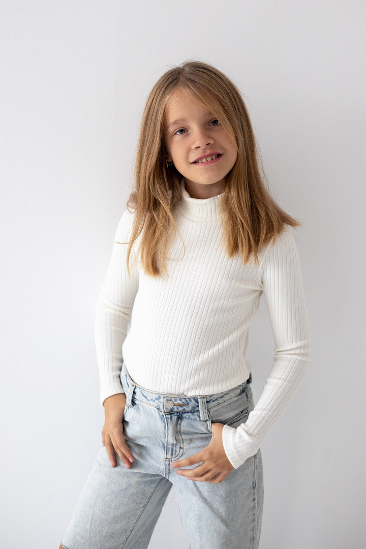 Базовий гольф для дівчаток з ангори мустанга з широкими смужками. Класичний крой гольфу з коміром - стійкою без відвороту. Полотно м'яке, еластичне і приємне до тіла. Тягнеться, добре тримає форму і не мнеться. Простий дизайн - ідеальна основа для створення модного зовнішнього вигляду.
