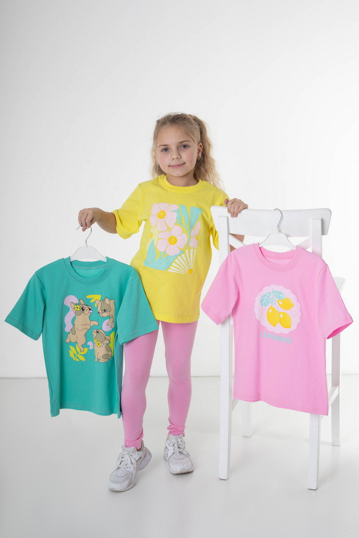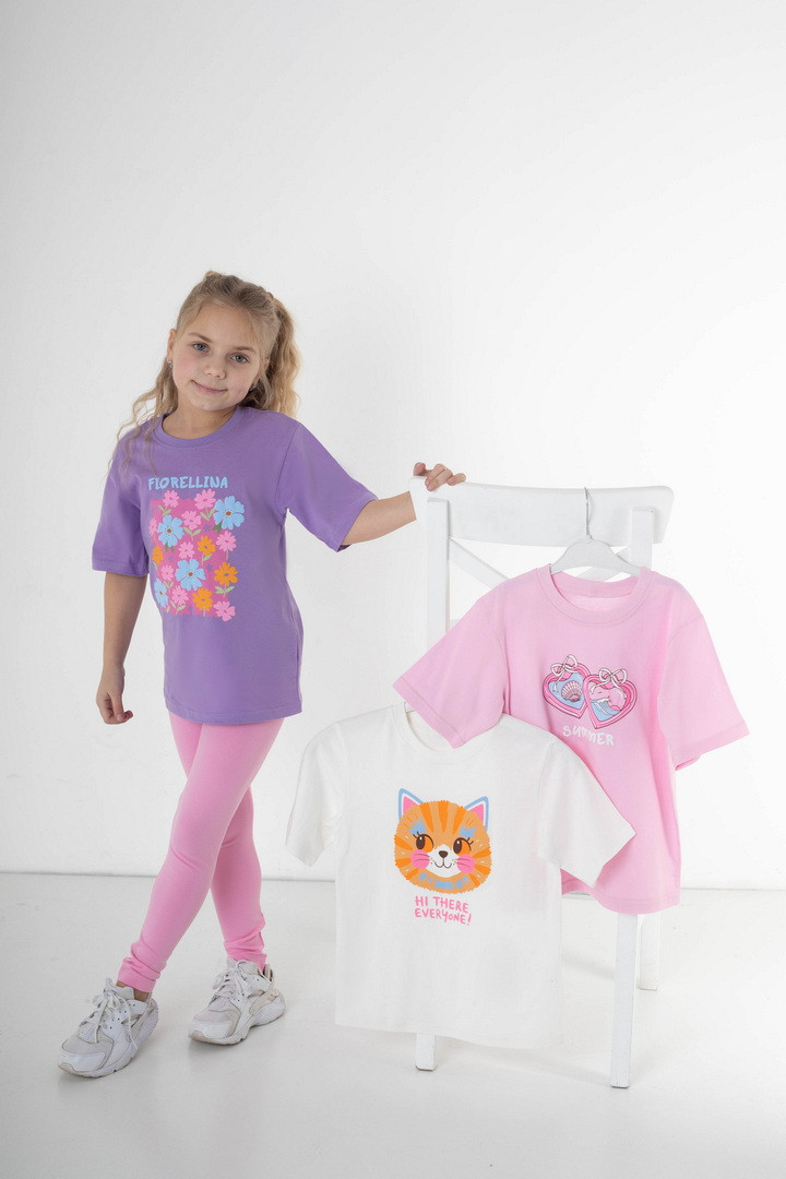 Набір із трьох футболок для дівчаток, виготовлених із високоякісного куліру, стане практичним та зручним доповненням до дитячого гардероба. Кожна футболка має м’яку, дихаючу структуру тканини, що забезпечує максимальний комфорт упродовж усього дня. Кулір ніжний до шкіри, не викликає подразнень і чудово підходить для щоденного використання, активних ігор та прогулянок. Футболки виконані у класичному прямому крої з короткими рукавами та округлою горловиною, що гарантує свободу рухів. У наборі — три різні принтовані дизайни, що дозволяє легко комбінувати їх з шортами, джинсами, легінсами чи спідничками. Матеріал добре зберігає форму, м’якість та яскравість малюнків. Це універсальний набір, який стане чудовим вибором для садочка, школи, відпочинку або повсякденного використання — три зручні футболки в одному комплекті забезпечують практичність і вигідність покупки.