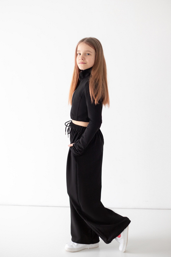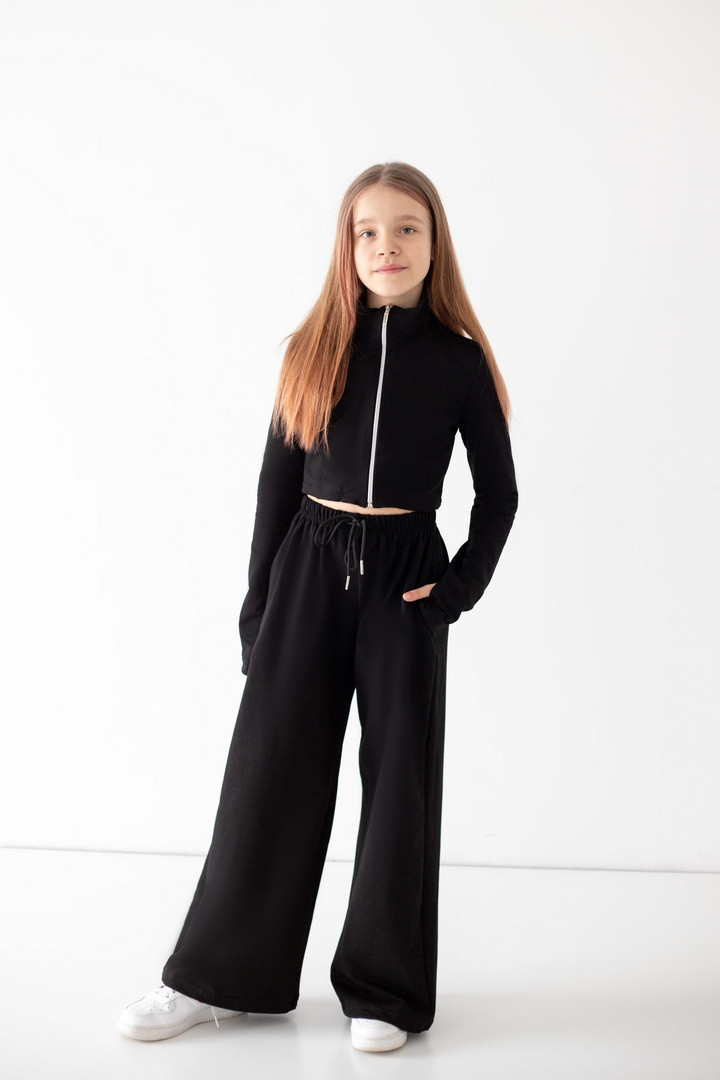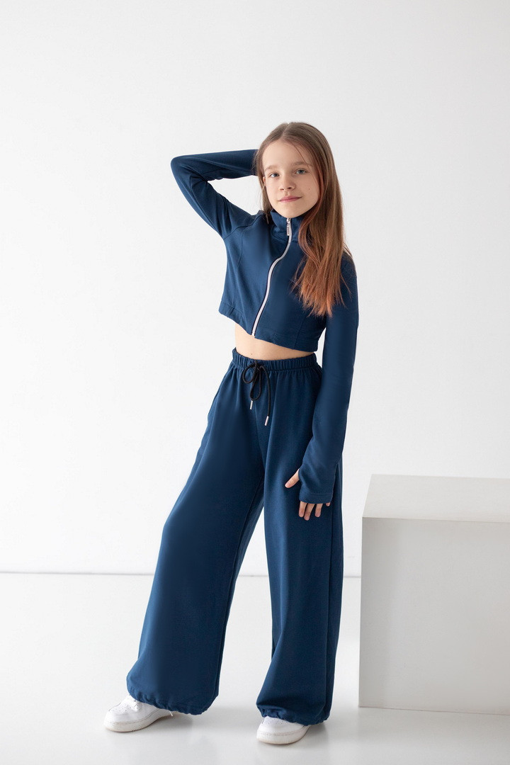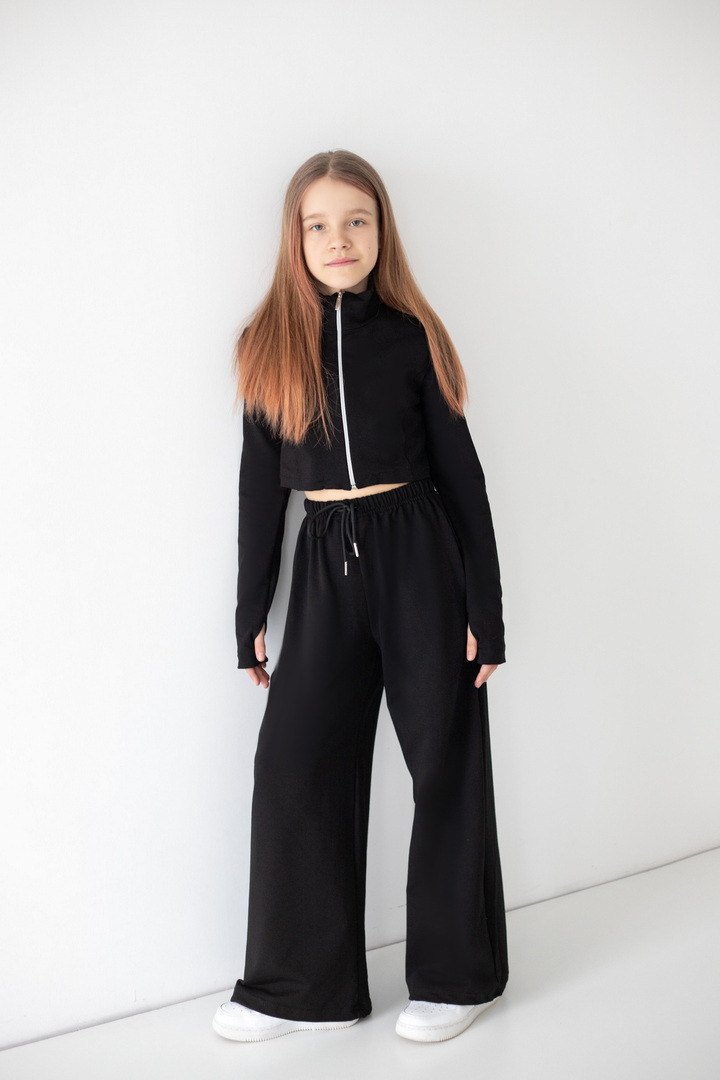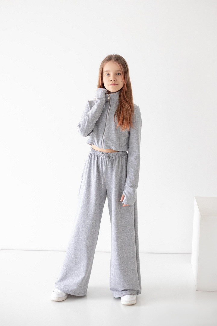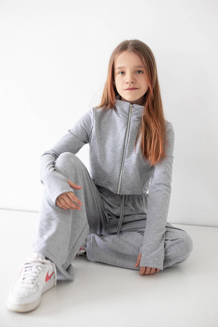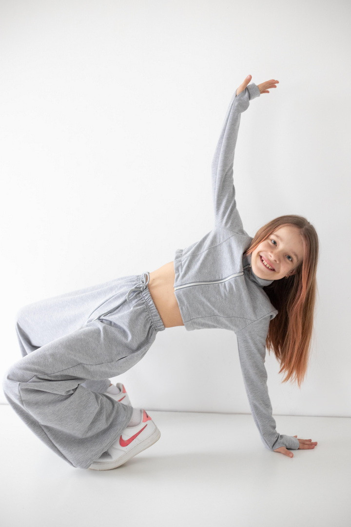Цей неперевершений костюм створений для дівчат, які рухаються, мріють, сміються і хочуть виглядати стильно. Тут кожна деталь працює на відчуття впевненості та свободи. Коротенький зіп-худі — справжній модний акцент образу. Легкий, сучасний, з характером — він ідеально підкреслює силует і додає трендового настрою. Блискавка робить його максимально зручним, а висока горловина огортає ніжним теплом у прохолодні моменти. І та сама деталь, яка викликає “вау-ефект” — отвори в рукавах для великих пальців. Це не просто стиль. Це відчуття: коли зручно бігти, гуляти — і нічого не заважає. Штани — це абсолютна свобода руху. Вони не сковують і дозволяють бути активною на всі 100%. Пояс із куліскою та шнурком легко підлаштовується під фігуру, а фіксатори внизу додають магії трансформації: сьогодні — розслаблений силует, завтра — більш зібраний і спортивний. Один костюм — десятки настроїв. І все це — з ніжного, дихаючого двониткового футера. Тканина, яка приємно торкається шкіри, “дихає” разом із тілом і витримує всі пригоди: від активних прогулянок до затишних вечорів. Одягни — і відчуй, як звичайний день стає особливим.