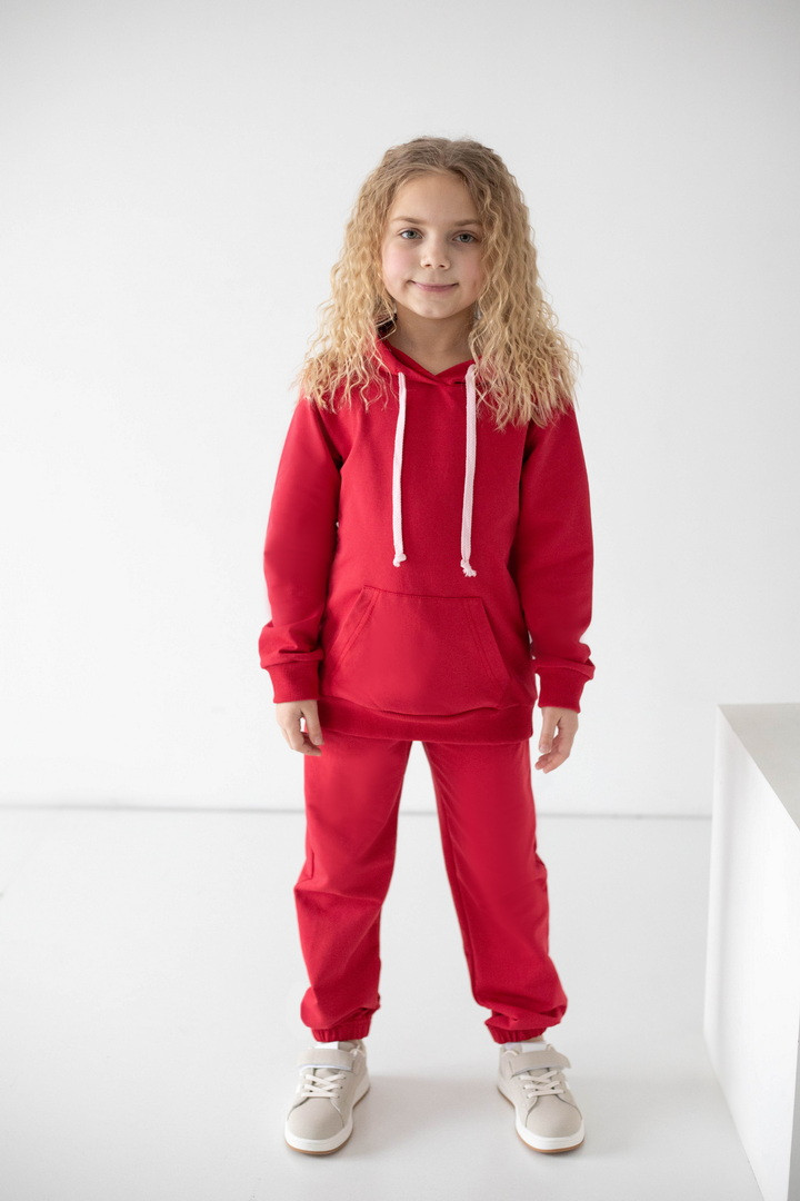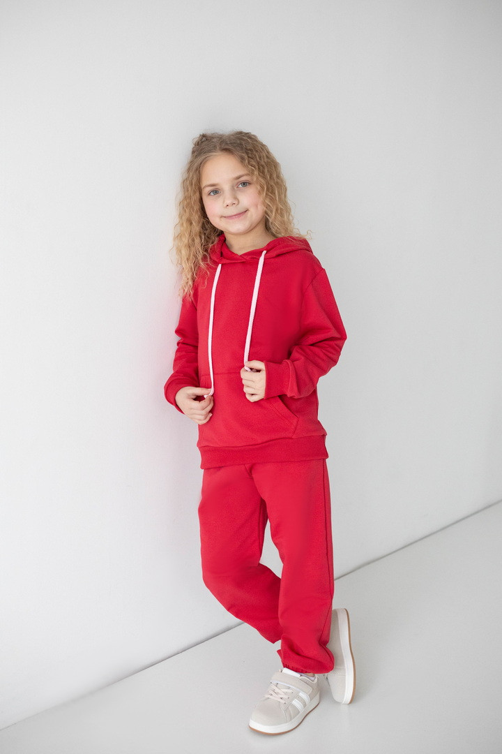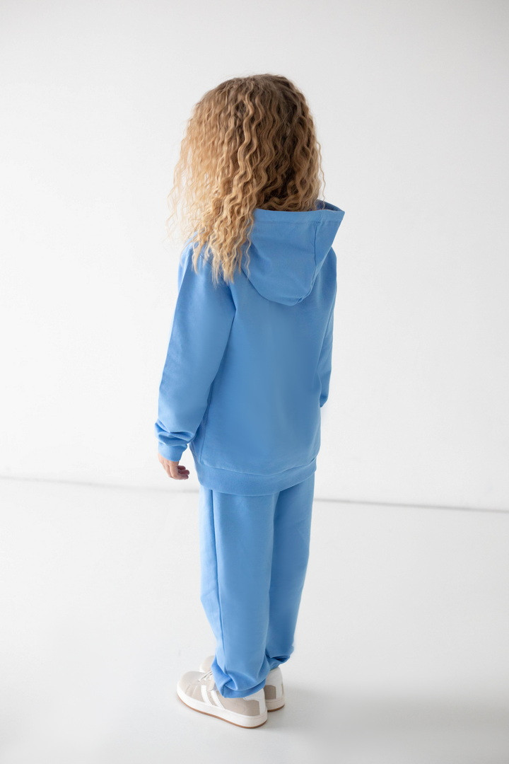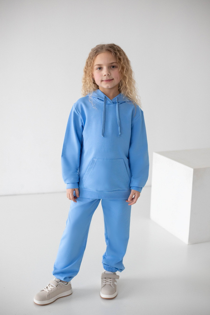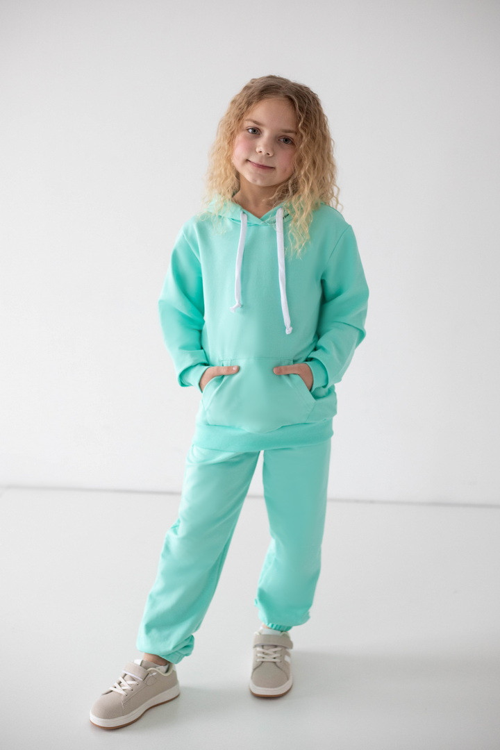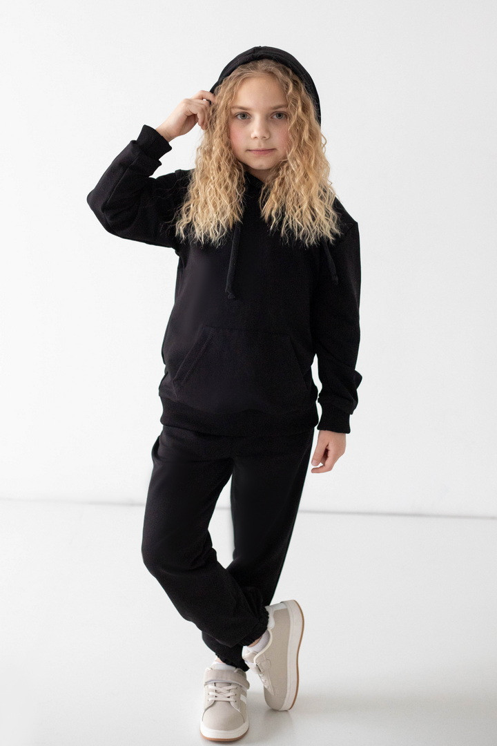 Цей костюм — про свободу, легкість і той самий комфорт. Він створений для дівчаток, які не сидять на місці, люблять рух, прогулянки та відчуття затишку. М’який двонитковий футер ніжно огортає тіло, не парить і дарує приємні тактильні відчуття протягом усього дня. Худі з капюшоном має зручну кенгуру-кишеню та акуратні манжети — нічого зайвого, лише продуманий комфорт і сучасний мінімалізм. Штани з еластичною резинкою, шнурком та манжетами ідеально сідають по фігурі, не сповзають і не сковують рухів. Костюм виглядає стильно, охайно та актуально, водночас залишаючись максимально практичним. Ідеальний вибір для дівчаток, які люблять комфорт, стиль і настрій.