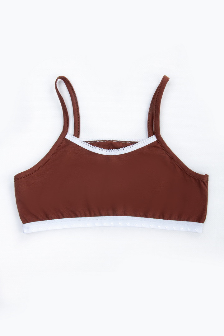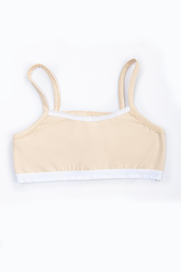 Бюстьє для дівчат зі стрейч-куліру пеньє — це делікатна та зручна річ, створена спеціально для активних дівчат. Воно ідеально підходить для занять спортом, танцями, гімнастикою або як перший комфортний елемент білизни на період росту. Тканина стрейч-кулір пеньє виготовлена з добірної бавовни найвищої якості. Завдяки додаванню еластану, матеріал добре тягнеться та м’яко облягає фігуру. Бюстьє має лаконічний крій без кісточок і зайвих швів, що забезпечує максимальний комфорт протягом усього дня. Тонкі еластичні бретелі не тиснуть і надійно фіксуються на плечах, а м’яка нижня резинка утримує виріб на місці, не залишаючи слідів на шкірі. Це універсальне рішення для дівчат, які цінують свободу рухів, натуральні матеріали та відчуття легкості протягом дня. Розраховано на дівчат віком від 8 до 13 років залежно від зросту.