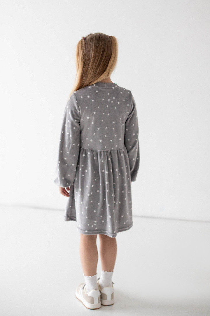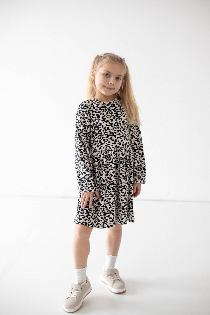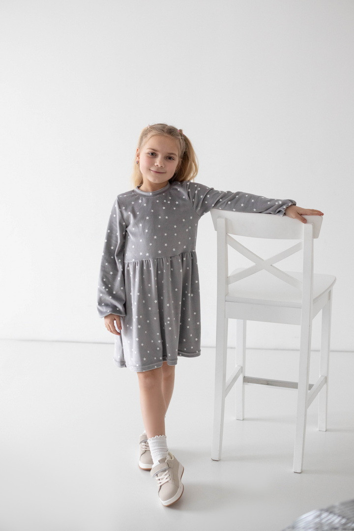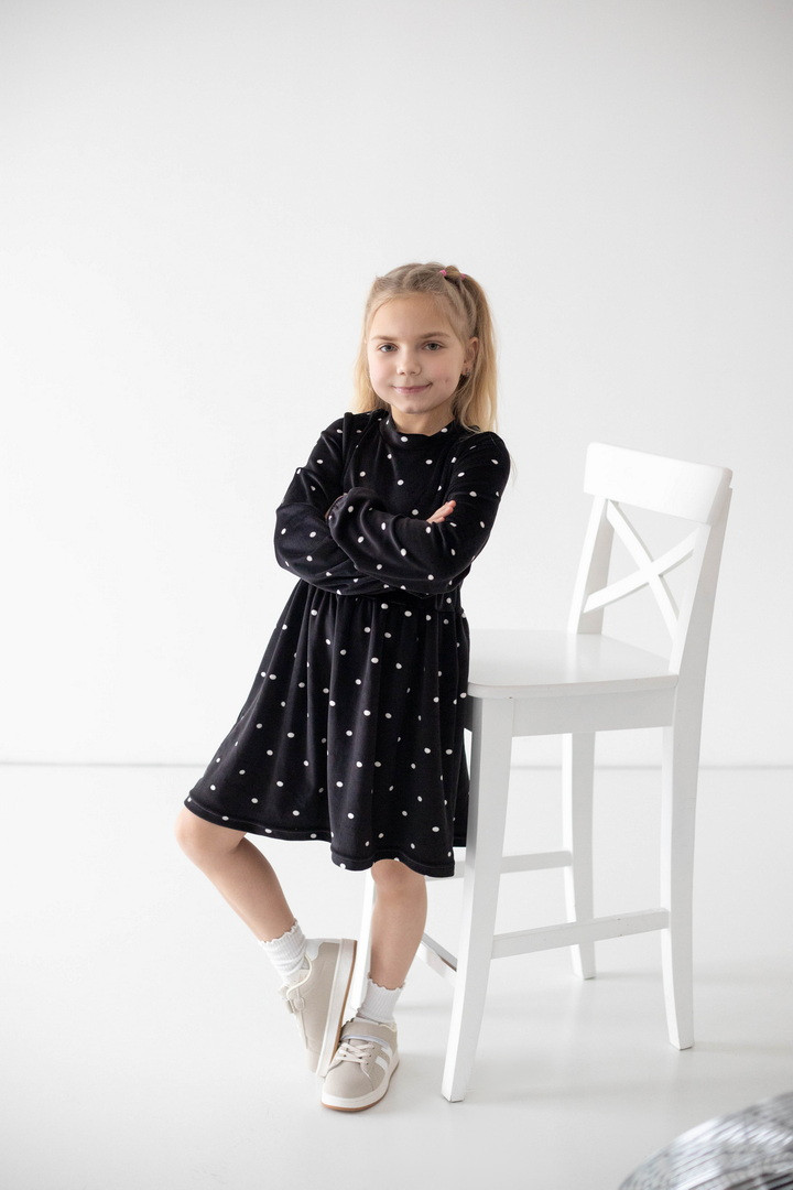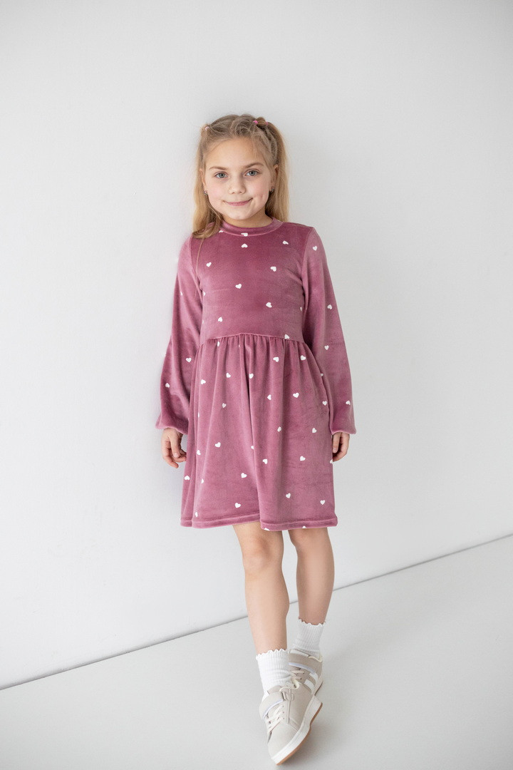 Ця сукня — справжнє втілення ніжності, затишку та дитячої чарівності. Сукня виготовлена з м’якого, оксамитового велюру, вона приємно торкається шкіри, даруючи комфорт протягом усього дня. Матеріал ніжно переливається, додаючи образу акуратного шику та тепла. Сукня має зручний крій з відрізною талією та легкою спідницею, яка красиво рухається під час ходьби чи ігор. Довгий рукав забезпечує комфорт у прохолодну погоду, а округла горловина виглядає лаконічно та охайно. Різноманітні набивні принти додають сукні настрою, роблять її яскравою, живою та по-справжньому гарною. Ця сукня — про тепло, комфорт та радість. Вона точно стане улюбленою річчю в гардеробі маленької модниці.