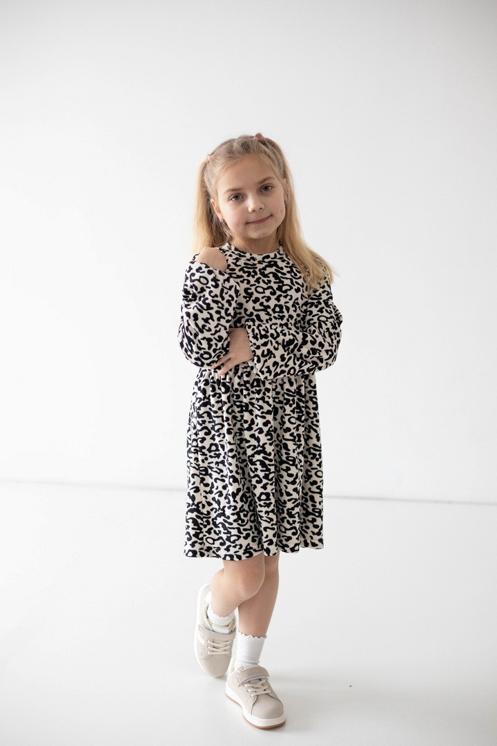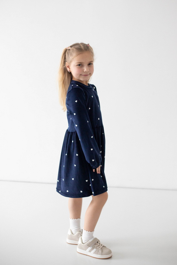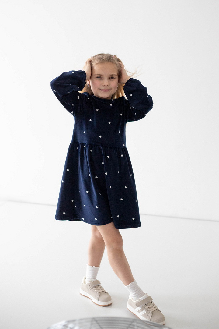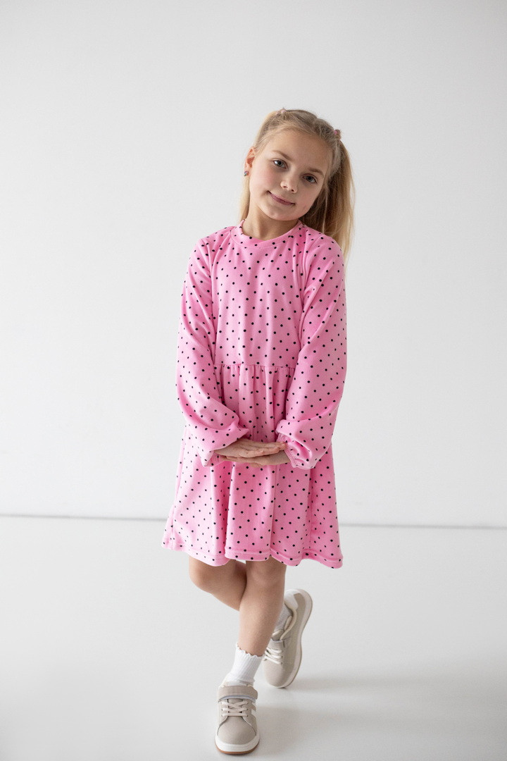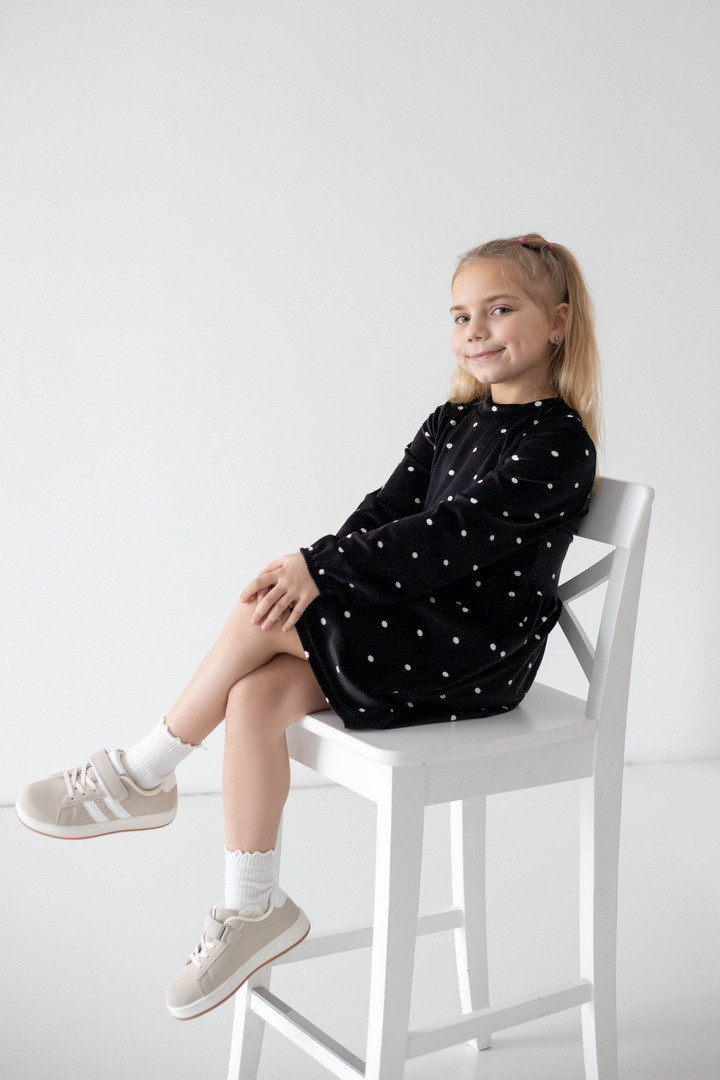 Ця сукня — справжнє втілення ніжності, затишку та дитячої чарівності. Сукня виготовлена з м’якого, оксамитового велюру, вона приємно торкається шкіри, даруючи комфорт протягом усього дня. Матеріал ніжно переливається, додаючи образу акуратного шику та тепла. Сукня має зручний крій з відрізною талією та легкою спідницею, яка красиво рухається під час ходьби чи ігор. Довгий рукав забезпечує комфорт у прохолодну погоду, а округла горловина виглядає лаконічно та охайно. Різноманітні набивні принти додають сукні настрою, роблять її яскравою, живою та по-справжньому гарною. Ця сукня — про тепло, комфорт та радість. Вона точно стане улюбленою річчю в гардеробі маленької модниці.