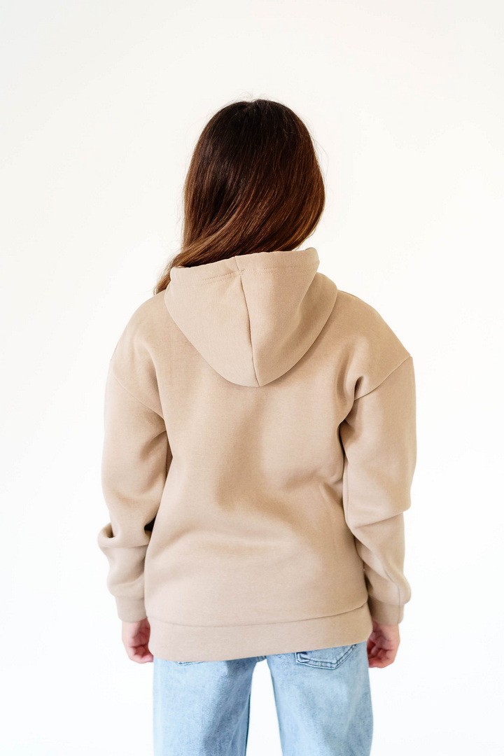 Худі для дівчаток виготовлено із однотонного полотна "Футер тринитковий з начосом", тканина м'яка, тепла та приємна до тіла, має густий начос з виворотньої сторони, щільність даного полотна гарно зберігає тепло. Худі - це один з найпопулярніших видів толстовок, основні переваги якого є вільний крій, капюшон, кишені по типу «кенгуру», та додаткові шнурки стягування. Така річ є універсальною, може комбінуватися з будь-якими брюками, джинсами - виглядає стильно та є обов'язковим атрибутом в гардеробі незалежно від віку чи статі.