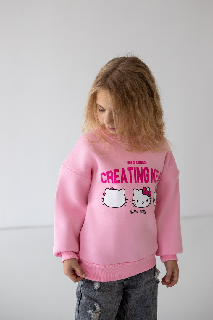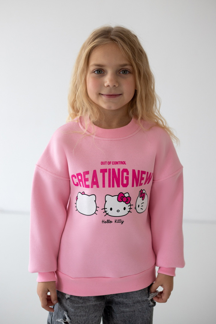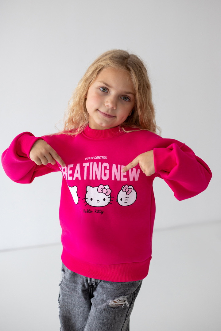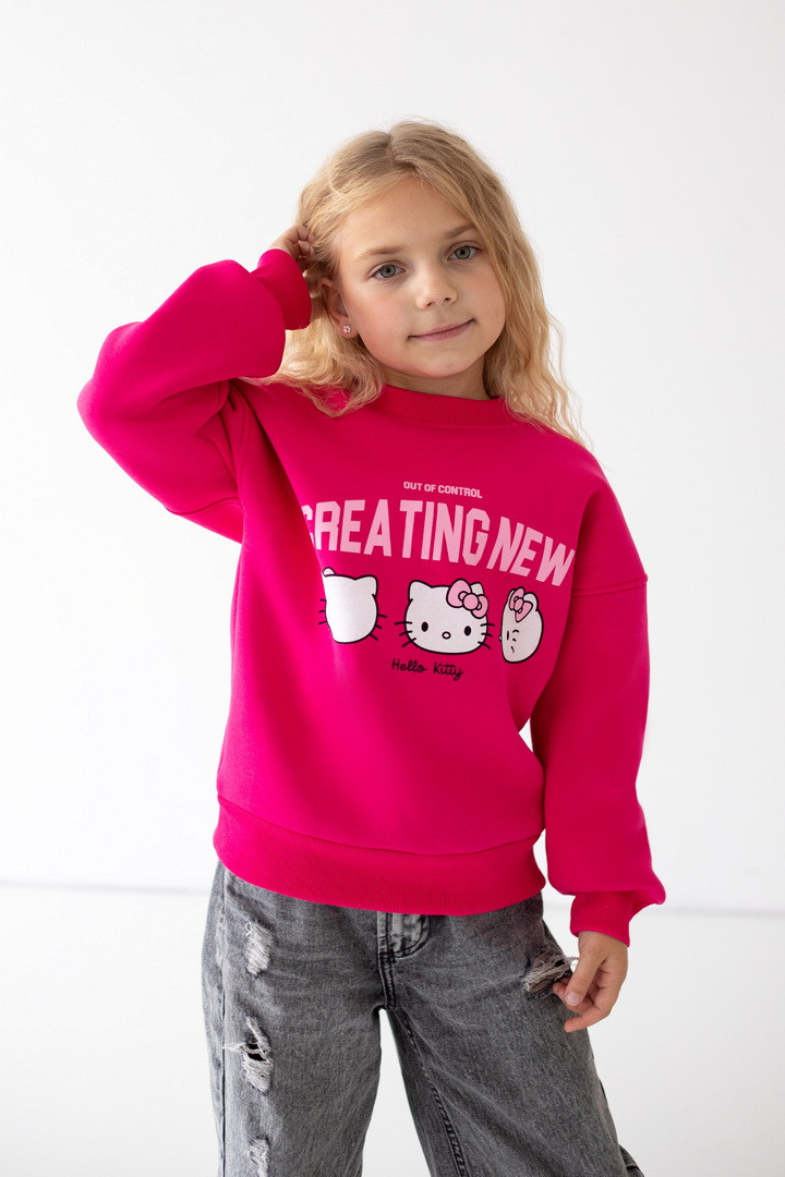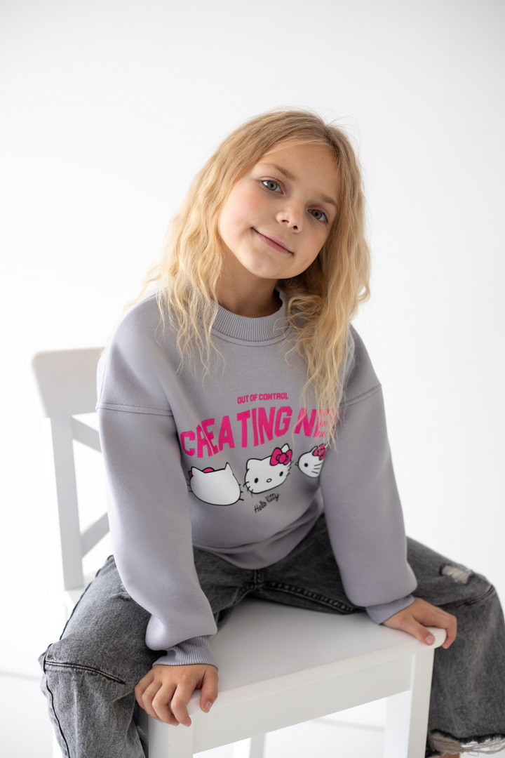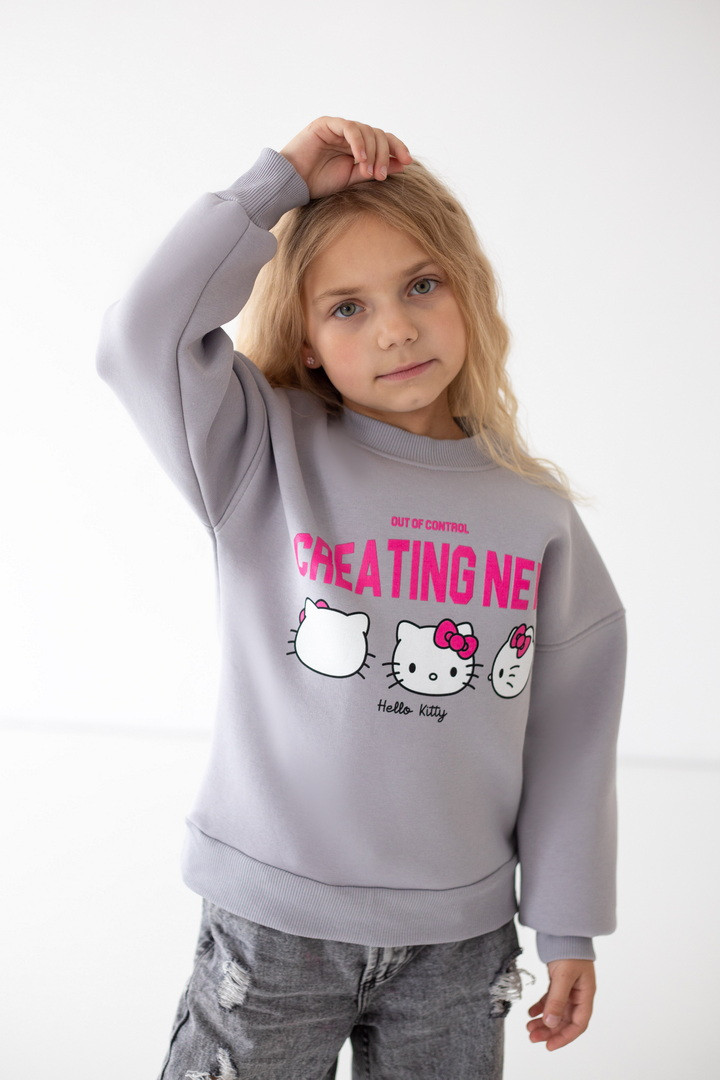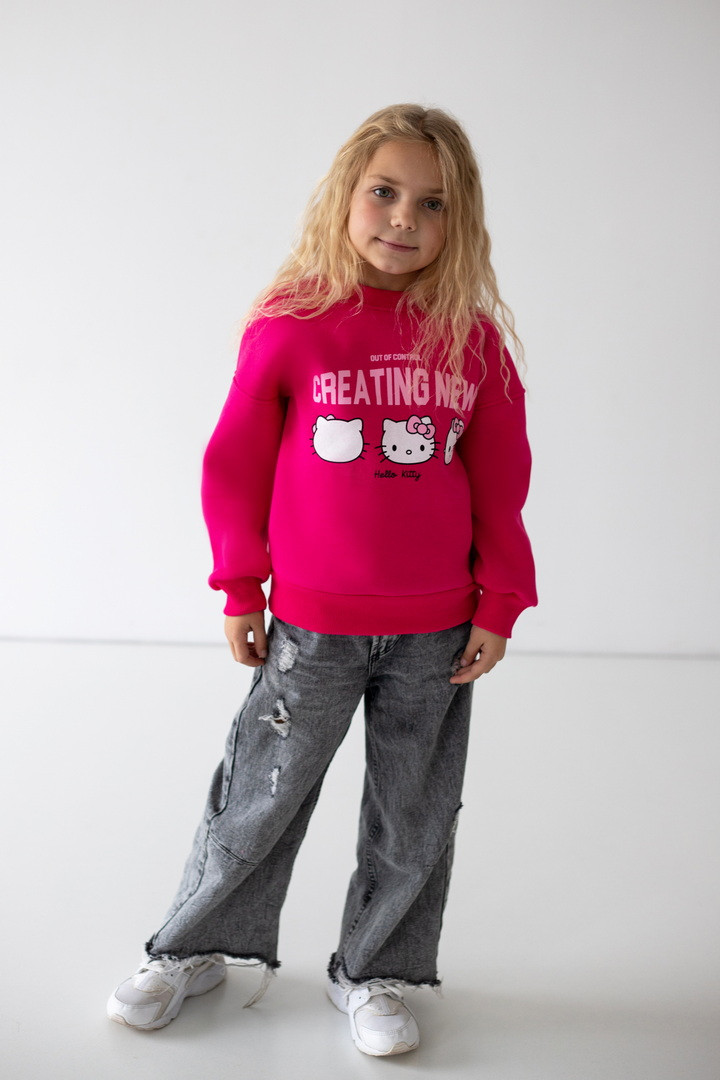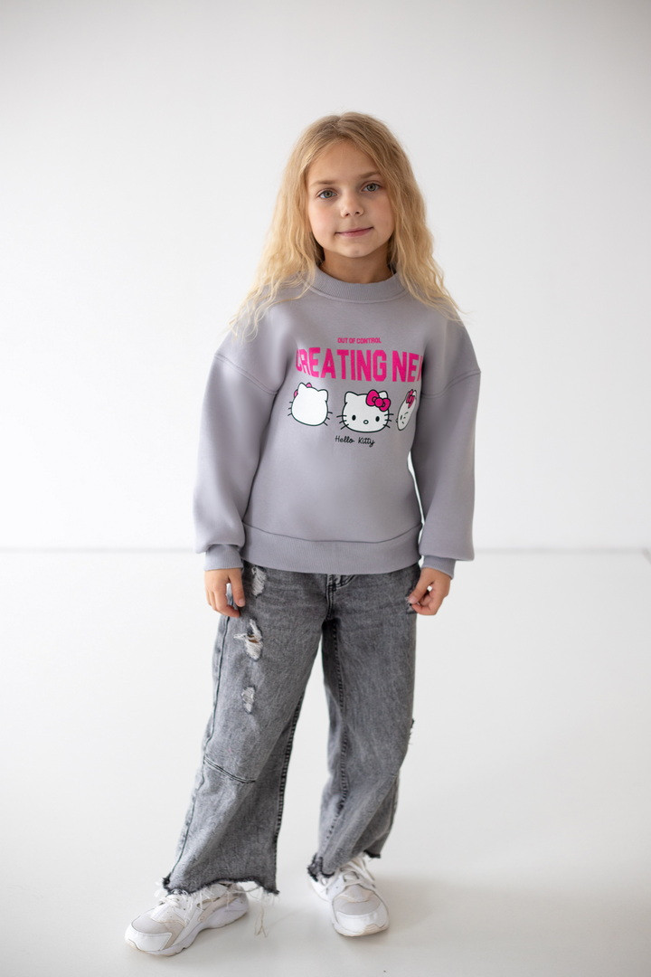 Неймовірно красивий і теплий дитячий світшот виготовлений з полотна "Тринитковий футер з начосом". Стильна та актуальна модель вільного крою, внизу та на рукавах еластичні манжети. Світшот оздоблений гарним малюнком. Таку річ можна поєднувати зі штанами, джинсами та з будь-яким взуттям, залежно від сезону.