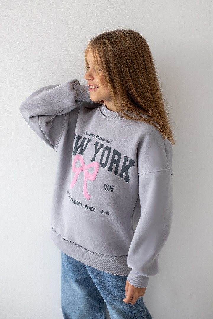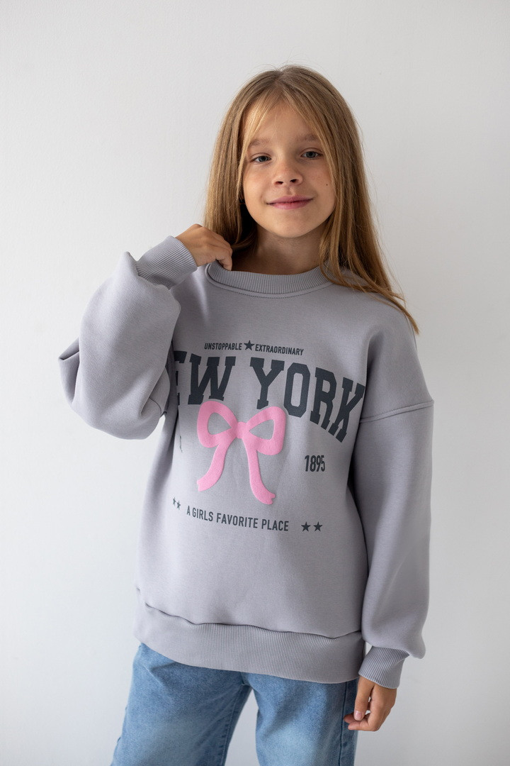 Світшот oversize для дівчат-підлітків з триниткового футера з щільним начосом. Модель з довгими рукавами на манжетах, виконаний з однотонного полотна з гарним та сучасним накатом. Світшот відмінно комбінується зі штанами в тон або джинсами, що дозволяє створювати різні образи. Полотно щільне, має гарні теплоізоляційні властивості.