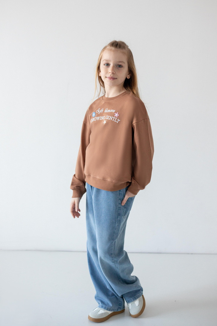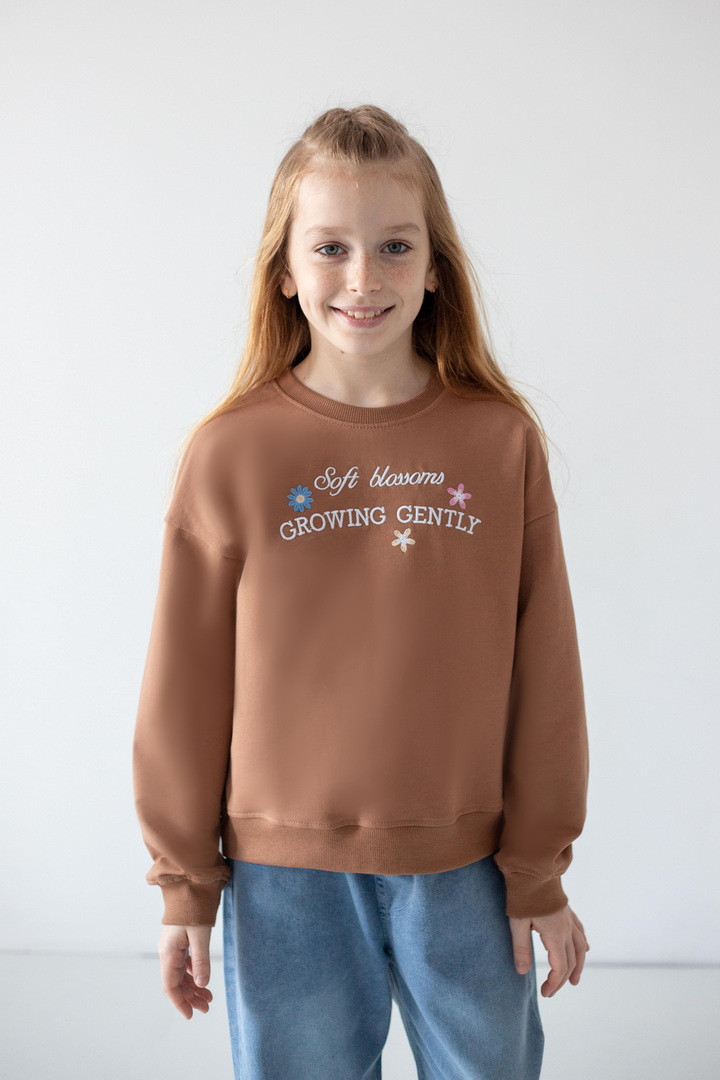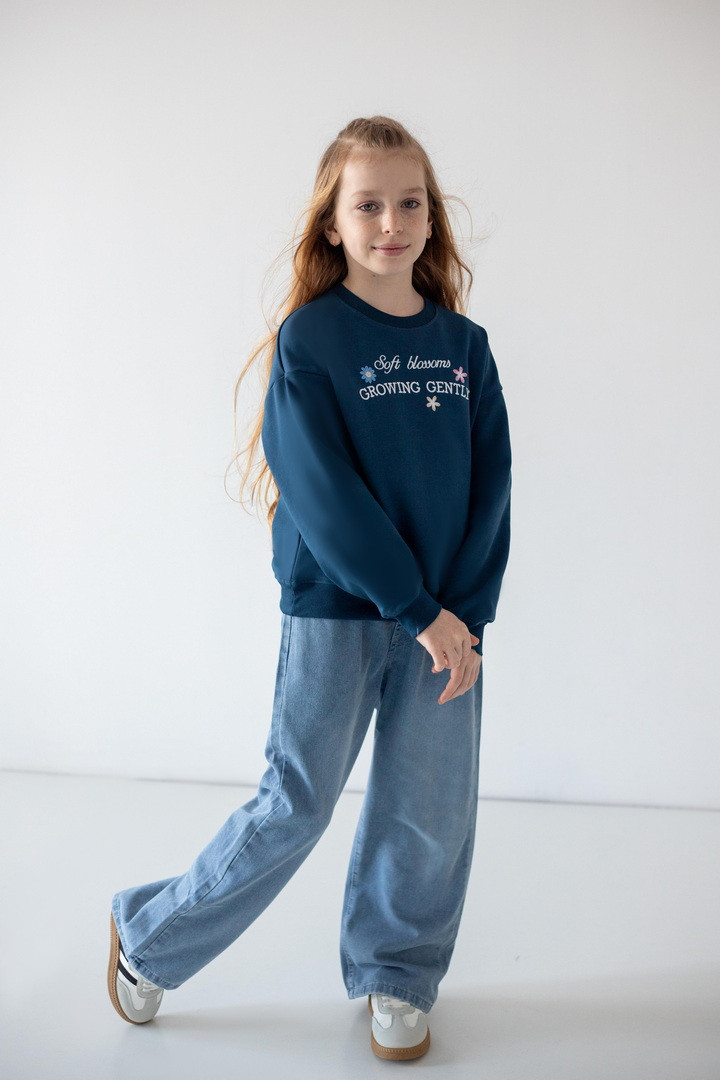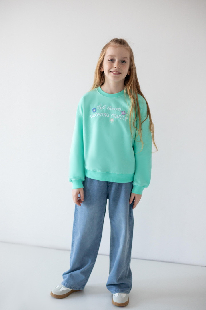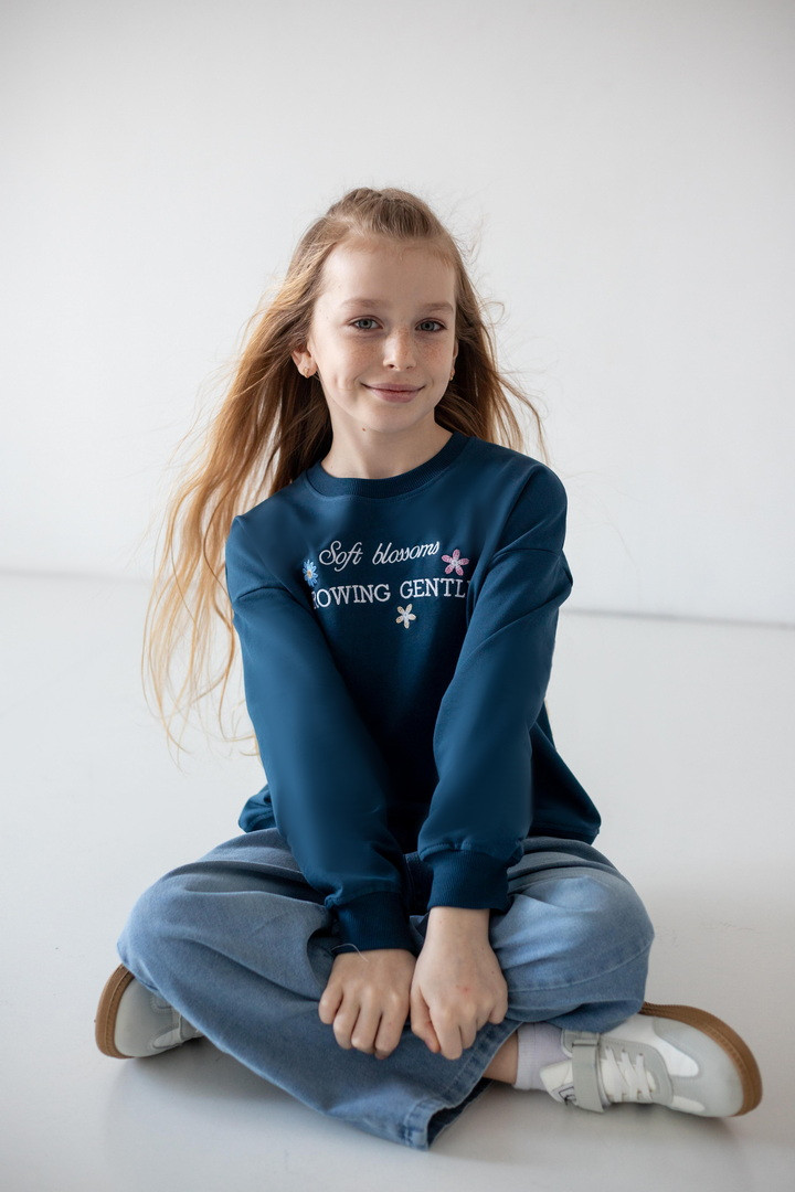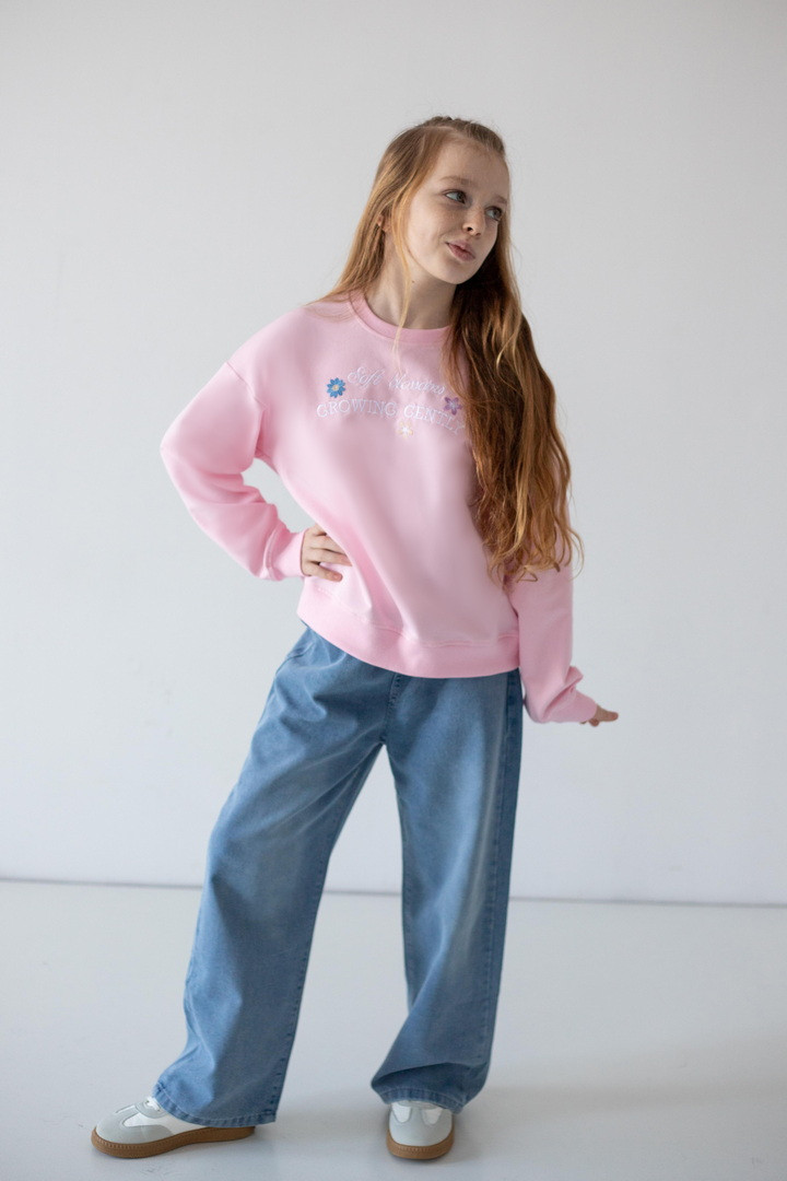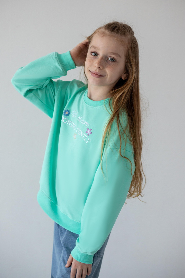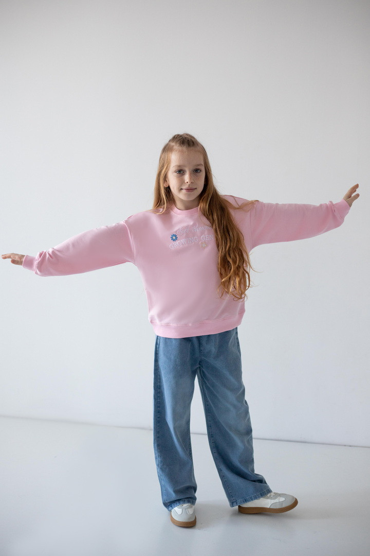 Цей світшот створений для активних днів, яскравих емоцій і впевнених кроків. Світшот створює ніжний, легкий образ, а стильна рельєфна вишивка на грудях, робить модель особливою. Двонитковий футер — ідеальна тканина для міжсезоння та прохолодних днів. Полотно м’яке, приємне до тіла, добре тримає форму та дозволяє шкірі дихати. Продуманий вільний крій зі спущеною лінією плеча виглядає сучасно. Манжети на рукавах і по низу додають завершеності силуету та забезпечують комфортну посадку. Практичний, універсальний і трендовий — саме той світшот, який поєднує стиль, якість та зручність.