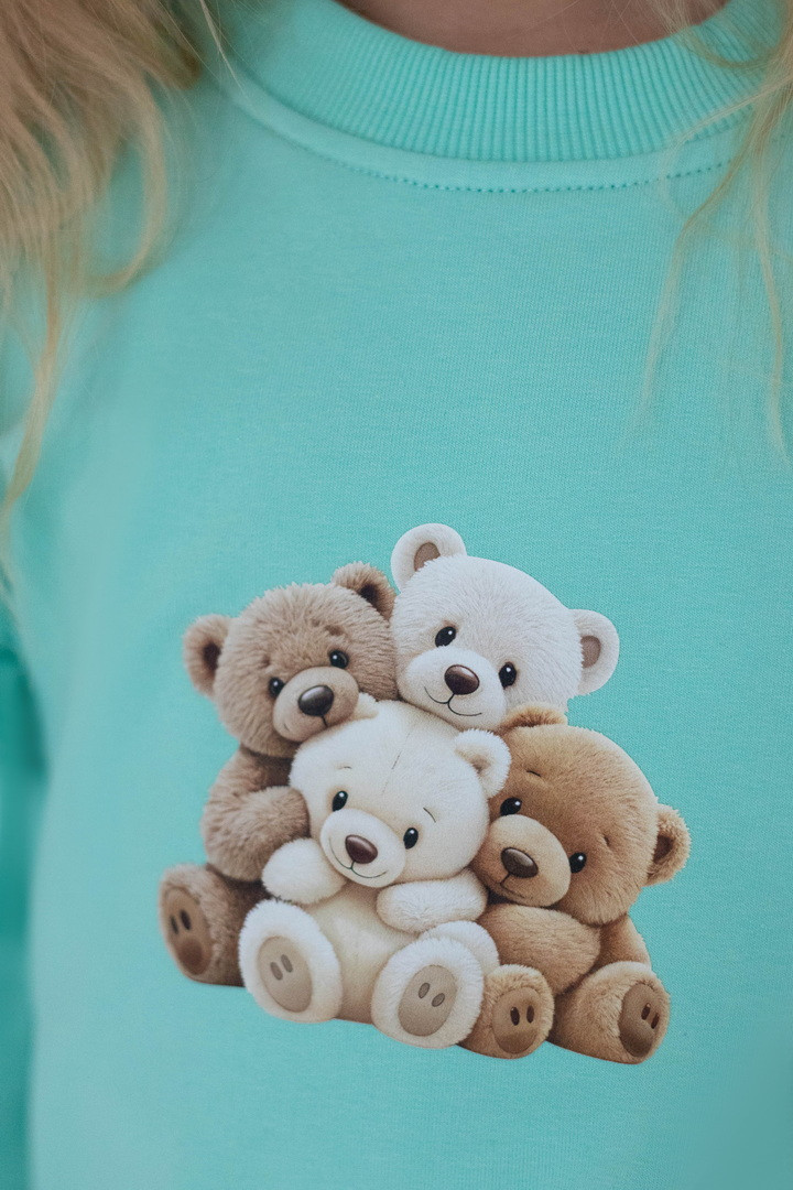 Світшот для дівчаток із двониткового футера — це поєднання комфорту, практичності та ніжного дизайну для щоденного гардероба. Виріб виготовлений із якісного полотна, який приємний до тіла, м’який на дотик, добре пропускає повітря та водночас зберігає тепло. Модель має класичний прямий крій і забезпечує комфорт протягом дня. Кругла горловина оброблена еластичною трикотажною резинкою, яка щільно прилягає, не тисне та добре тримає форму. Низ виробу та манжети на рукавах також виконані з еластичної резинки, що додає зручності. Особливу чарівність світшоту надають декоративні волани на рукавах, які створюють ніжний та акуратний акцент. Центральним елементом дизайну є декоративний принт, що виглядає мило та привабливо, роблячи модель ідеальним вибором для дівчаток.