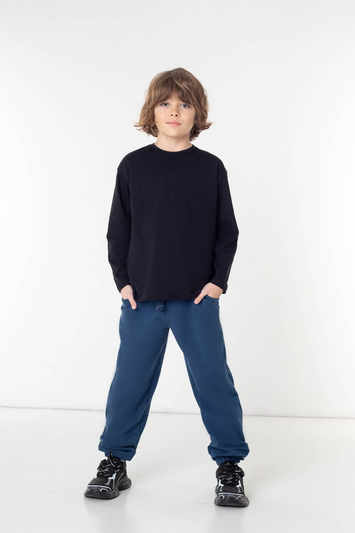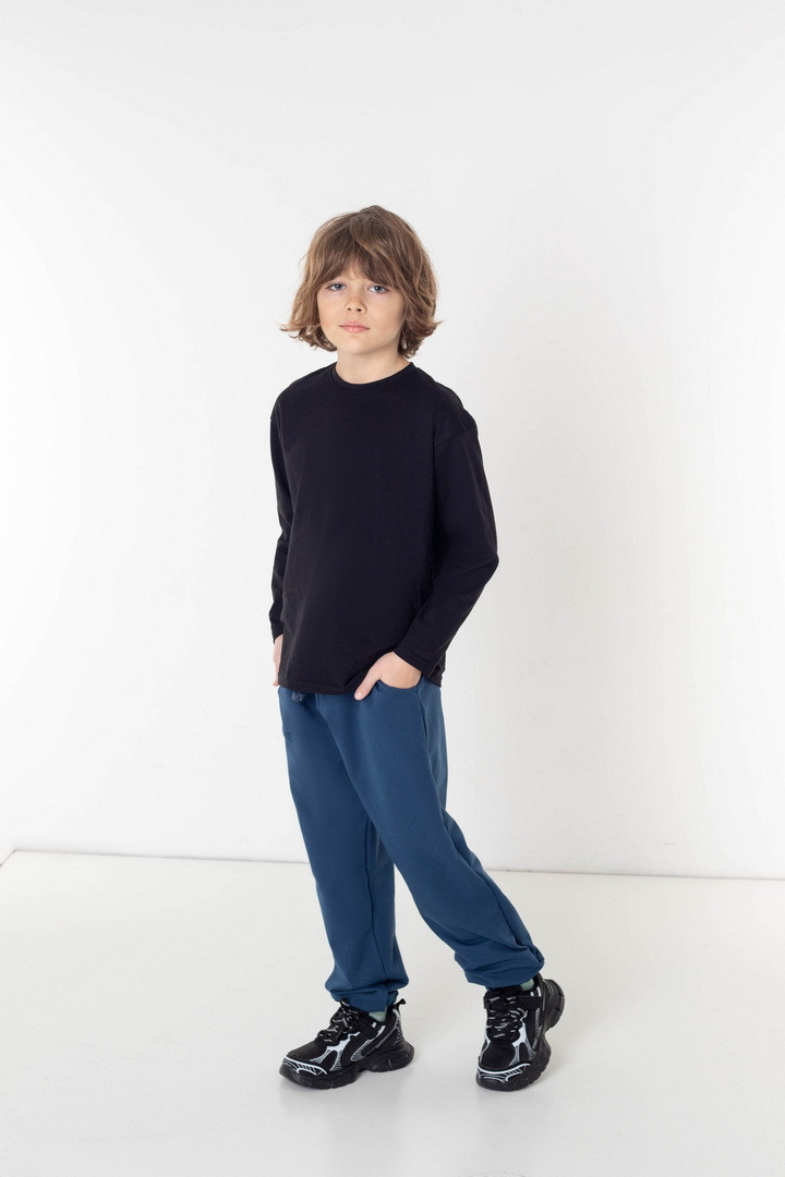 Штани для хлопців із двониткового футера — це поєднання стриманої естетики, продуманого крою та матеріалу високого класу. Двонитковий футер має щільну, рівну текстуру з м’яким дотиком до шкіри. Матеріал добре зберігає тепло, водночас пропускає повітря, не перевантажуючи образ зайвим об’ємом. Штани виглядають охайно протягом усього дня, не витягуються на колінах і залишаються презентабельними. Анатомічно продуманий крій та еластичний пояс створює ідеальну посадку без тиску. Манжети на резинці акуратно формують силует, додаючи образу завершеності та захищають від прохолоди. Лаконічний дизайн дозволяє легко поєднувати модель з базовим та верхнім одягом, формуючи сучасний образ у стилі casual premium. Ці штани — не просто зручний одяг, а функціональна основа гардероба, яка щодня виглядає дорого та доречно.