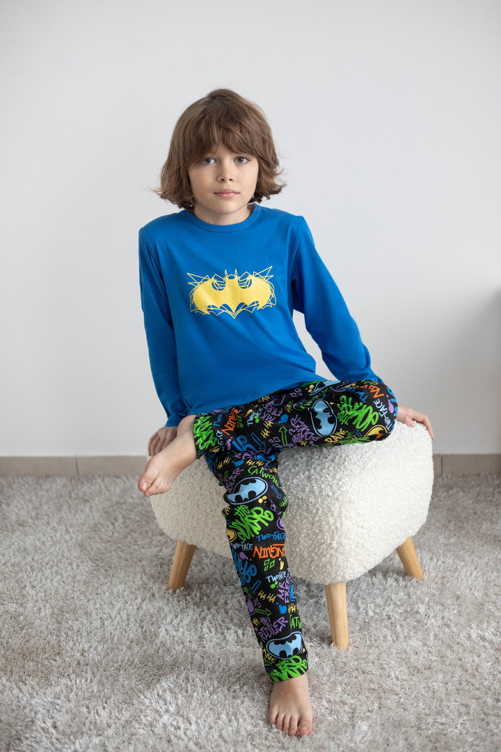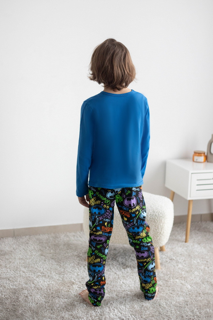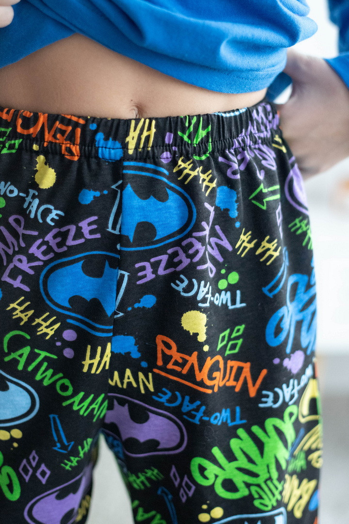 Стильна та зручна піжама для хлопців, створена для комфортного сну та домашнього відпочинку. Комплект складається з лонгсліва та штанів, виготовлених із м’якого куліру — натуральної бавовняної тканини, що добре пропускає повітря і приємна до тіла. Верх піжами — однотонний лонгслів із довгим рукавом та круглою горловиною. Центральним акцентом є яскравий тематичний принт, який додає образу сучасності та робить модель особливо привабливою. Штани прямого крою з еластичним поясом, забезпечують зручну посадку. Контрастний принт по всій поверхні додає динамічності й гармонійно поєднується з верхом комплекту. Піжама чудово підходить для сну, відпочинку вдома або як комфортний домашній комплект.