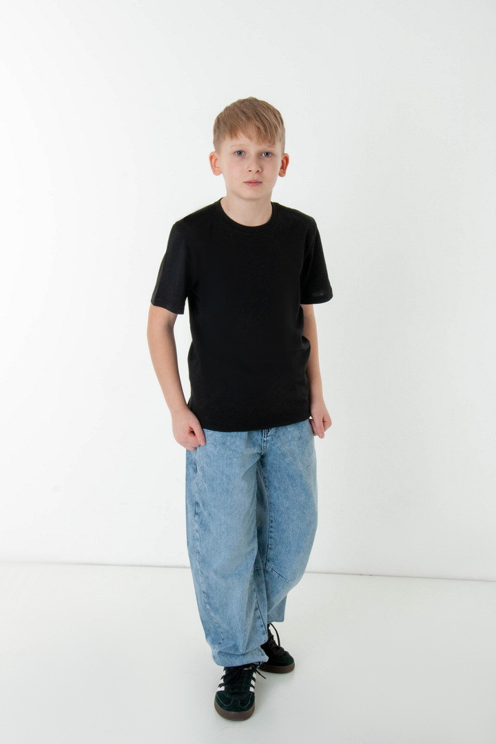 Футболка для хлопців із якісного куліру — це зручна та практична модель, що забезпечує максимальний комфорт упродовж дня. Виготовлена з натурального кулірного полотна, воно відзначається м’якістю, еластичністю та хорошою вентиляцією. Продуманий крій із коротким рукавом і круглою горловиною створює акуратний вигляд. Це універсальний варіант, який легко поєднується з будь-яким одягом і стане базовим елементом гардеробу хлопців. Ідеальний вибір для школи, прогулянок чи занять спортом — практичний варіант на кожен день.