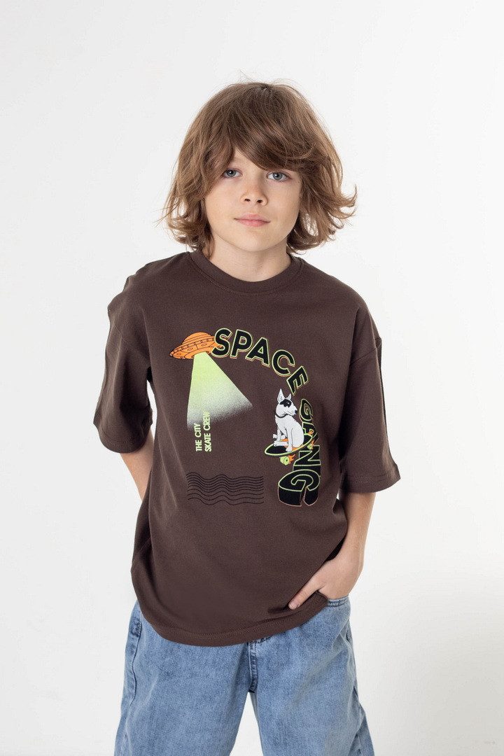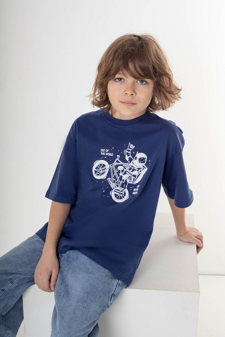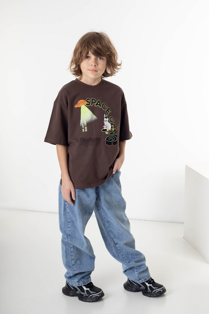 Стильна підліткова футболка з куліра — це ідеальний вибір для хлопців, які хочуть виглядати сучасно та відчувати максимальний комфорт щодня. Легке, приємне до тіла полотно забезпечує відмінну повітропроникність і дозволяє шкірі дихати навіть у активному темпі. Футболка має актуальний прямий крій та акуратний круглий виріз горловини. Виразний принт додає образу індивідуальності та підкреслює стиль молодого власника. Підходить для школи, прогулянок, спорту та подорожей. Стійкі фарби та якісний матеріал гарантують довговічність виробу.