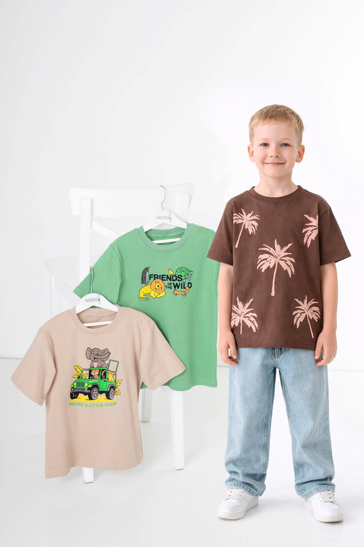 Комплект футболок для хлопчиків — створений для активних дітей, які люблять комфорт і яскраві образи. У комплекті зібрані футболки з різноманітними стильними принтами, що дозволяють щодня змінювати настрій та вигляд без зайвих зусиль. Вироби пошиті з якісного трикотажного полотна "кулір", яке добре тягнеться, м’яке на дотик і приємне до тіла. Матеріал відзначається високою повітропроникністю та зносостійкістю. Продуманий крій забезпечує свободу рухів і комфорт під час ігор, прогулянок та занять. Горловина не тисне й не деформується після прання, зберігаючи охайний вигляд виробу. Принти виконані у сучасному дизайні, не тріскаються та не втрачають яскравості з часом. Набір футболок легко комбінується з будь-яким одягом — від спортивних штанів до джинсів і шортів. Це практичний та вигідний вибір для повсякденного гардероба хлопчика.