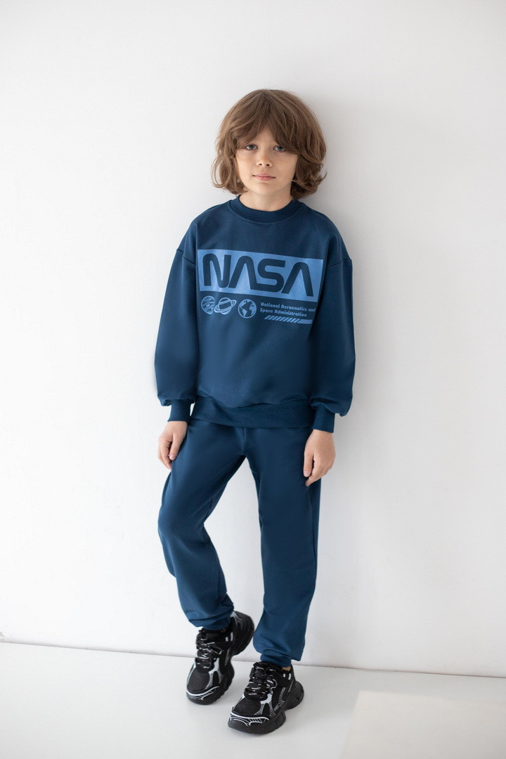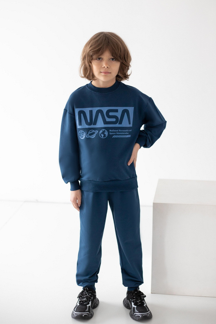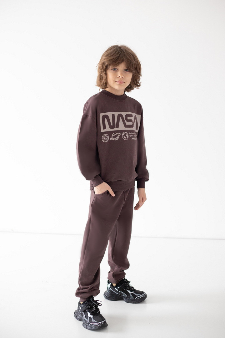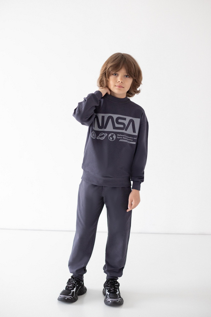 Сучасний костюм для хлопчиків, який поєднує трендовий дизайн і практичність на кожен день. Виконаний із якісного двониткового футера — приємний до тіла, добре пропускає повітря та зберігає форму. Тканина без начосу — ідеальний варіант для міжсезоння та прохолодних днів. Світшот вільного крою з м’якими манжетами забезпечує комфорт протягом усього дня. Стильний принт додає образу характеру та сучасного настрою. Штани мають зручний пояс на резинці (зі шнурком для регулювання), комфортну посадку та акуратні манжети внизу, що формують зібраний, охайний силует. Цей костюм виглядає актуально, носиться легко та стає базою гардеробу.