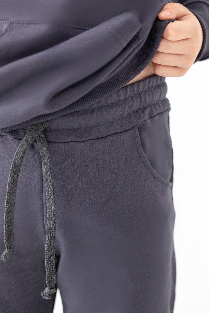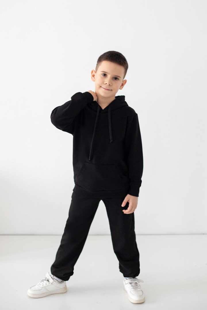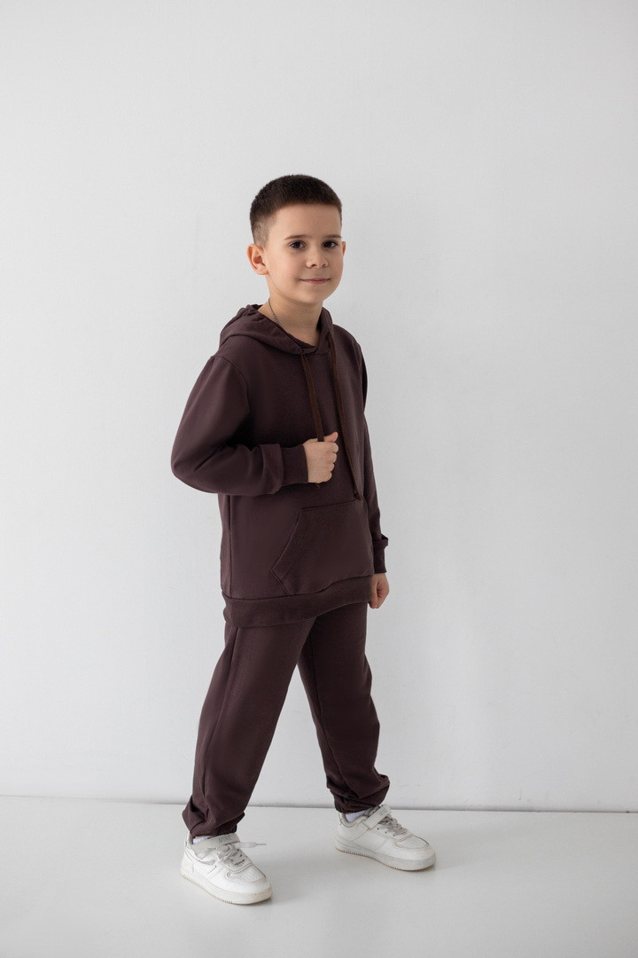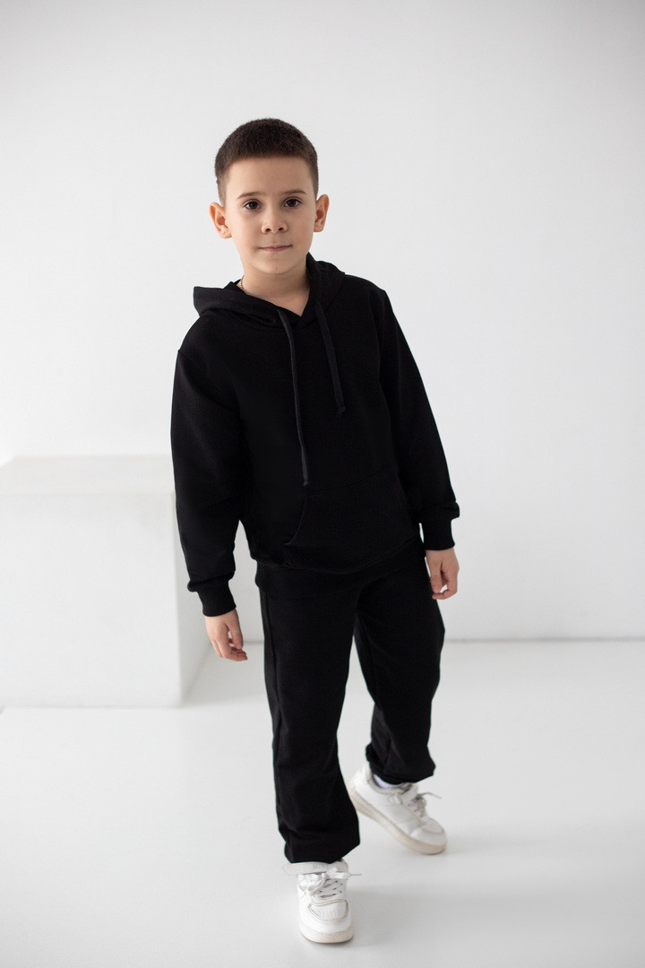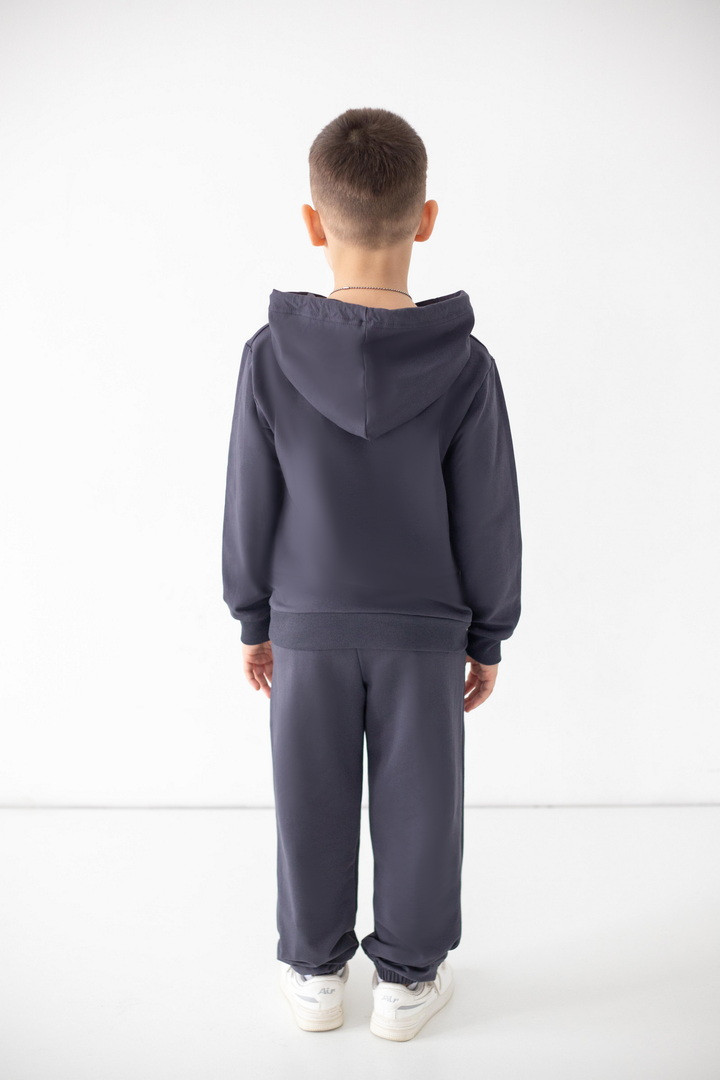 Цей костюм із двониткового футера створений для руху, драйву та щоденних відкриттів. Худі з капюшоном має продуманий крій: вільний силует дарує свободу, але водночас виглядає акуратно та зібрано. Кишеня-кенгуру — зручний акцент, який додає характеру та практичності. М’які манжети забезпечують комфортну посадку без тиску та перекручування. Штани ідеально балансують між зручністю та стилем: еластичний пояс із регулюванням, дозволяє підігнати посадку саме під вашу дитину, а манжети формують охайний, трендовий силует. Нічого зайвого — лише комфорт і функціональність. Двонитковий футер приємний до тіла, добре тримає форму та витримує активний ритм життя. Це саме той костюм, у якому хлопчик почувається впевнено, вільно та по-справжньому комфортно.