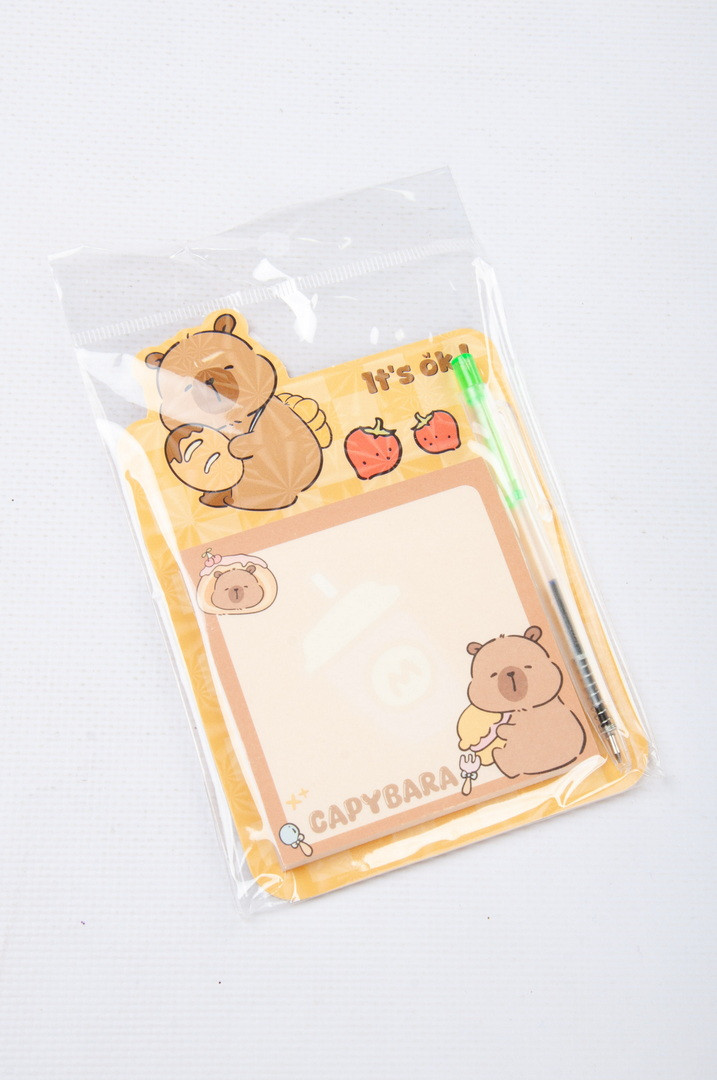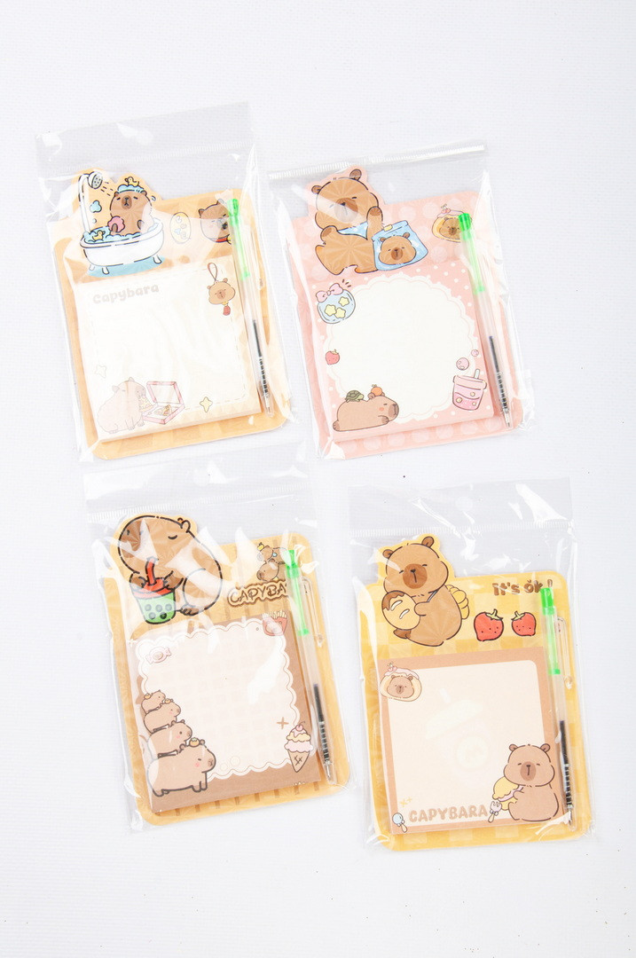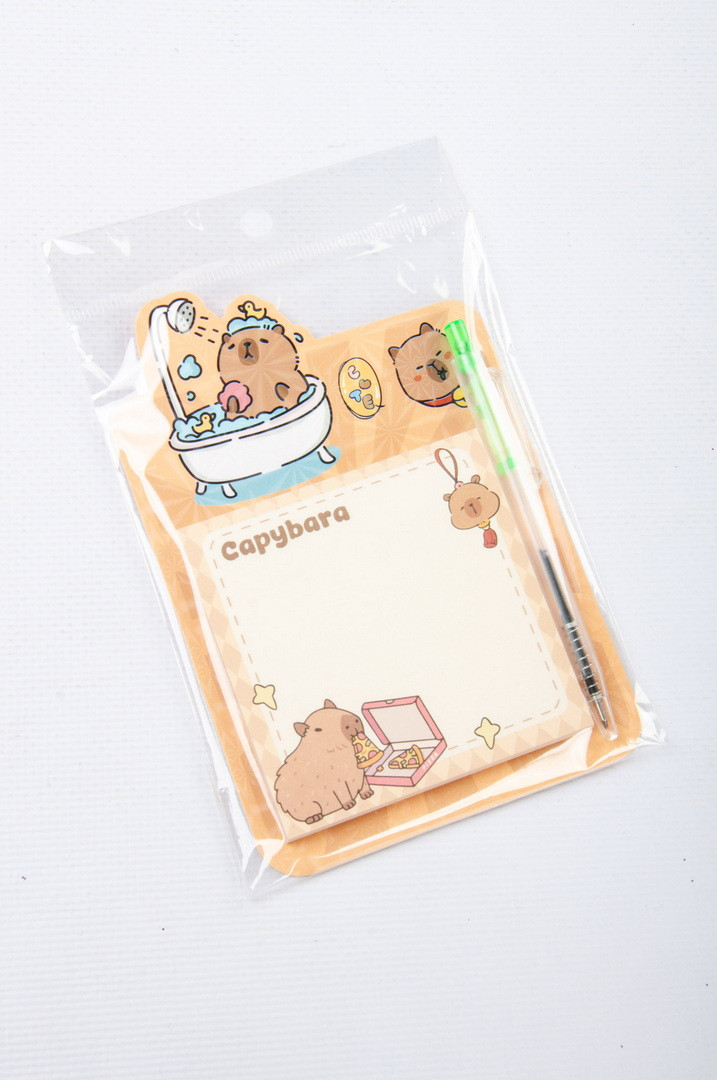 Папір для нотаток, 7,5х7,5 см, 50 аркушів, з ручкою, "Капібара"