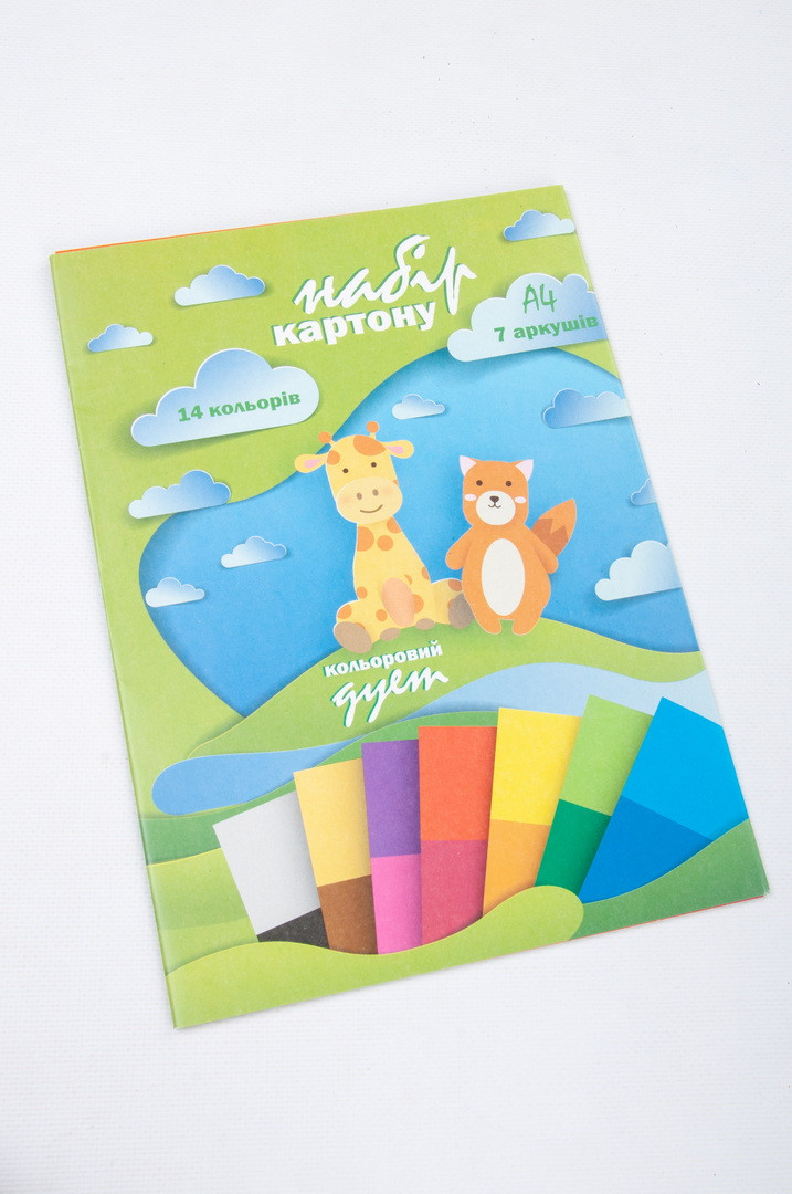Картон кольоровий, А4, 7 листів, 14 кольорів, односторонній