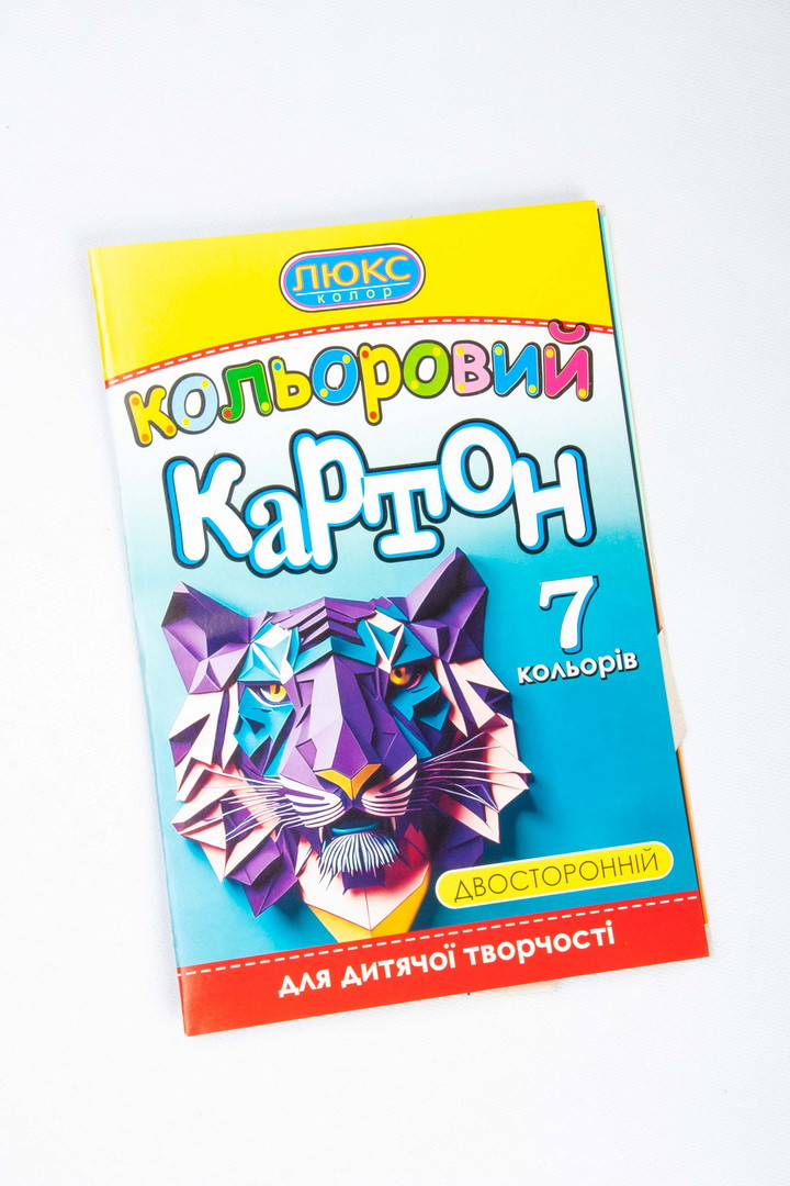 Картон кольоровий, А4, 7 аркушів, двосторонній, Люкс Колор