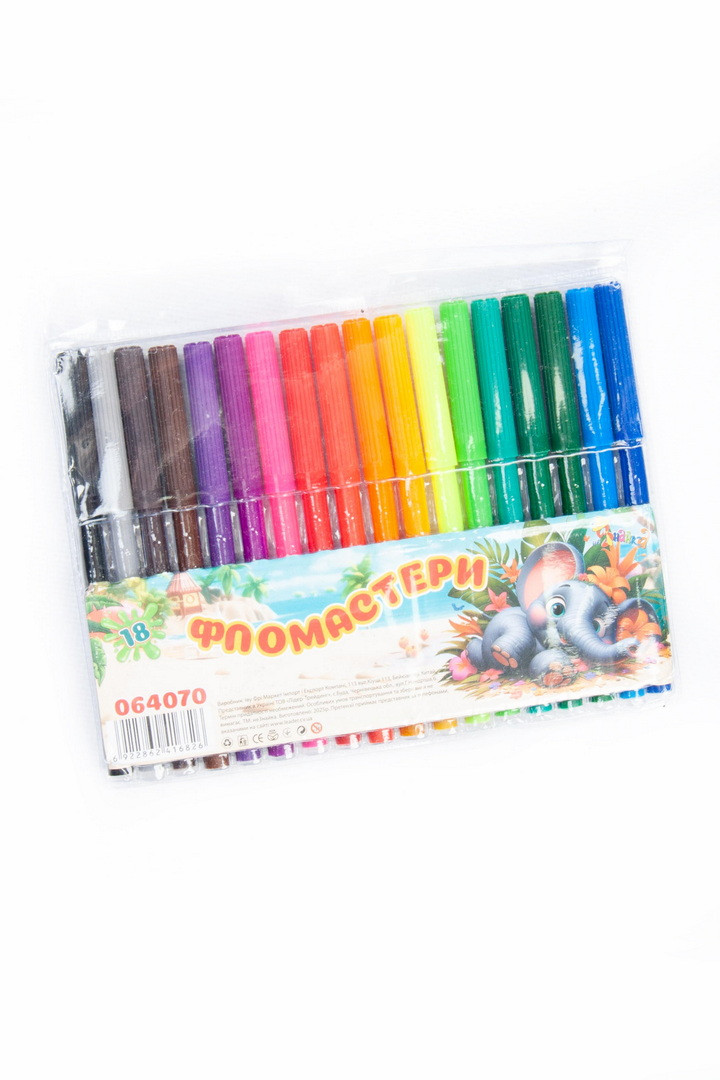 Фломастери 18 кольорів, пластикова упаковка