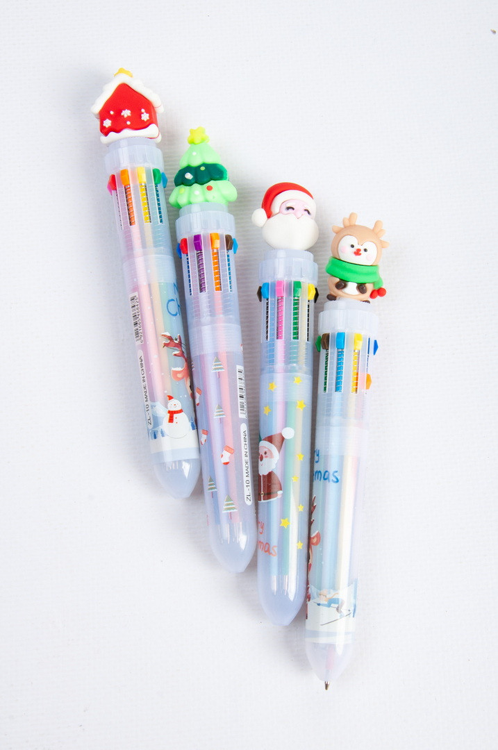 Ручка кулькова, дитяча, автоматична, з 10-ма різнокольоровими стрижнями, "Новий рік"