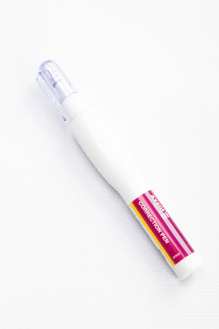 Коректор-ручка має металевий наконечник 0,8 мм, що дозволяє акуратно наносити виправлення, коригувати невеликі ділянки.