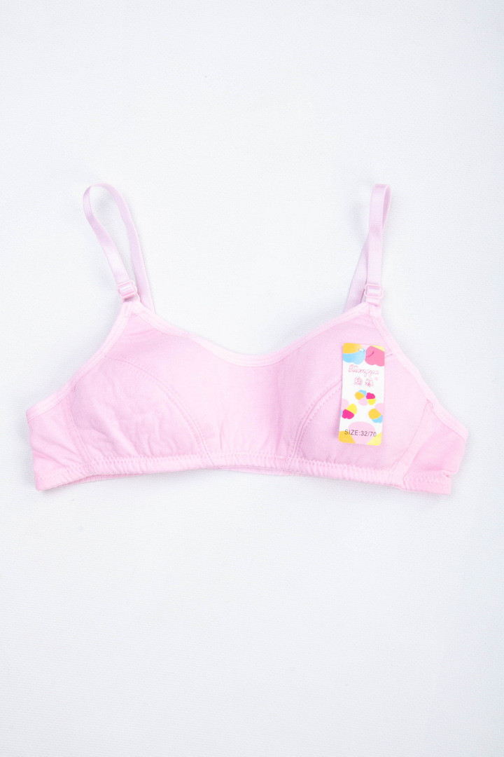 Дитячий бюстгальтер-топ з натуральної бавовни забезпечує м'який комфорт і дбайливу підтримку. Модель без кісточок, з тонкими незнімними бретелями, що регулюються по довжині. На спинці класична застібка - 2 гачки/3 рівні подовження. В області декольте передбачений ультратонкий поролоновий прошарок - він практично не відчувається і делікатно запобігає просвічуванню. Ідеальний варіант для щоденного носіння, школи та активного дня.