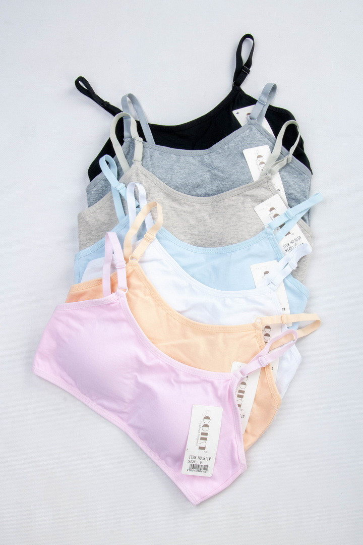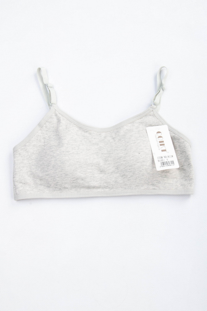 Топ-бюстгальтер для дівчаток-підлітків виготовлений з натуральної бавовни, м'якої та приємної до тіла. Модель з тонкими незнімними бретелями, які регулюються по довжині для комфортної посадки. Всередині передбачені вбудовані поролонові вкладиші, без кісточок. На спинці — класична застібка 2 гачки/3 рівні подовження.