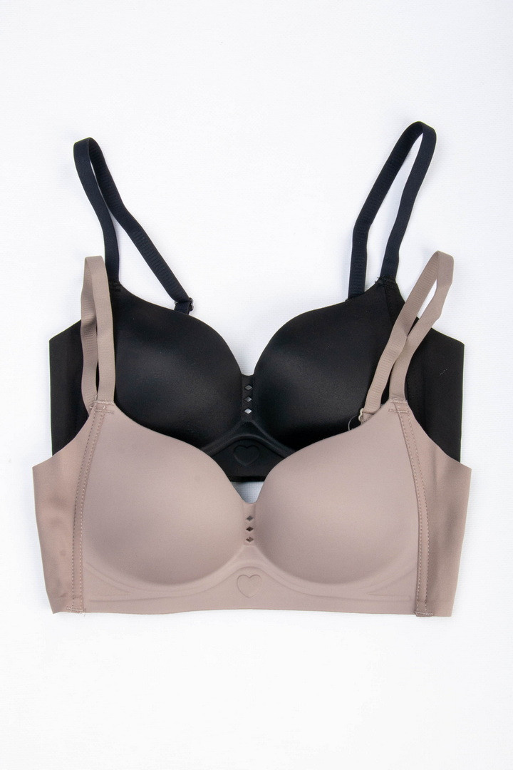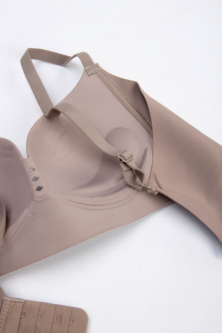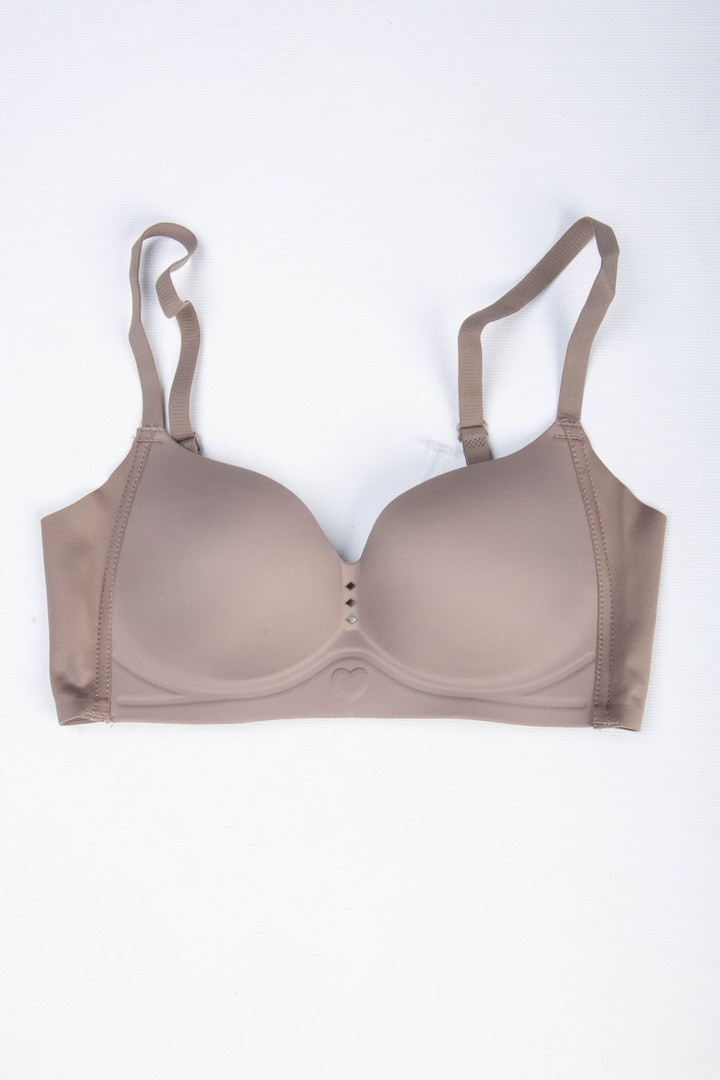 Гладкий бюстгальтер на маленькому пуш-апе без кісточок. Бретель – незнімна, регулюється, спина – гладка. Застібка 2 гачки на 4 позиції.