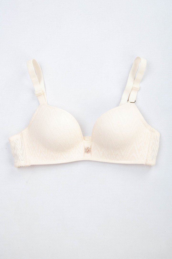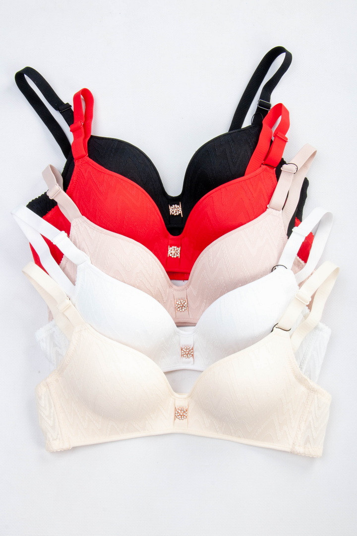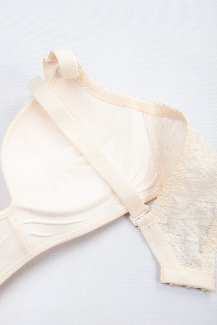 Мереживний бюстгальтер з формованими поролоновими чашками і легким поролон-коректором забезпечує акуратну форму і делікатний підйом без використання кісточок. Модель виконана з елегантного мережива, бретелі знімні і регулюються по довжині, дозволяючи змінювати посадку. На спинці — класична застібка 3 гачки/4 рівні подовження. Зручний, м'який і універсальний варіант для повсякденного носіння.