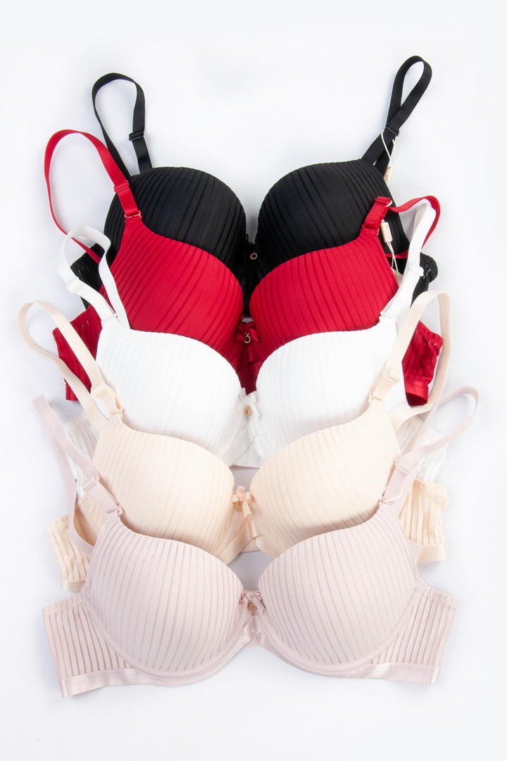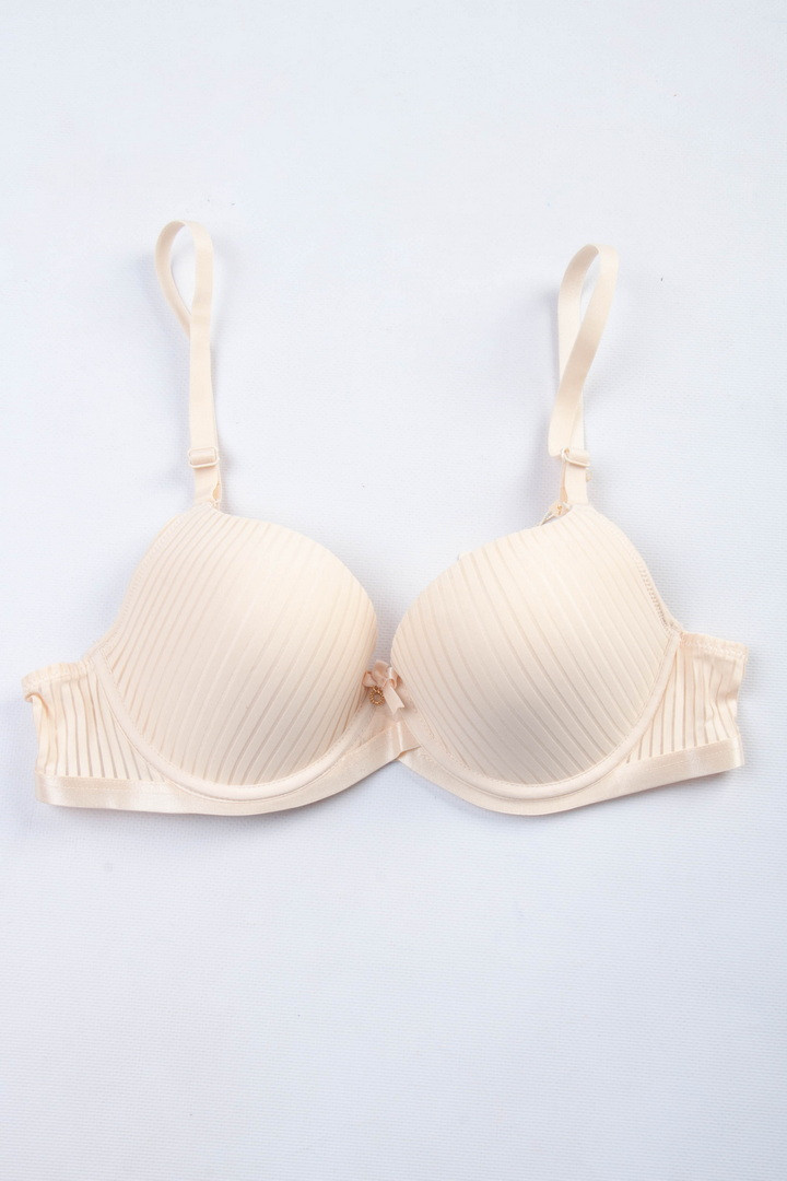 Бюстгальтер у рубчик на товстому поролоні, бретель-знімна, регулюється. На кісточках. Застібка 2 гачки на 4 позиції.