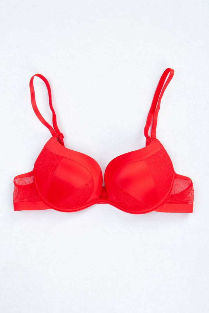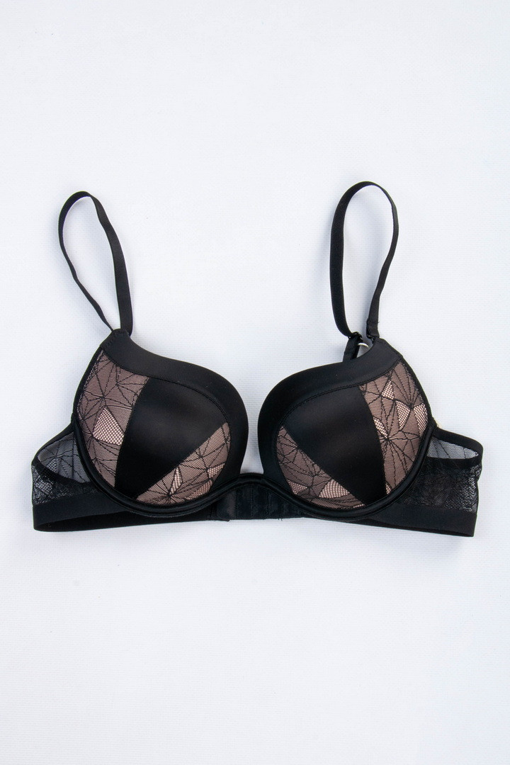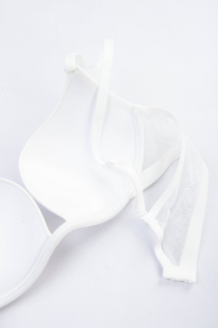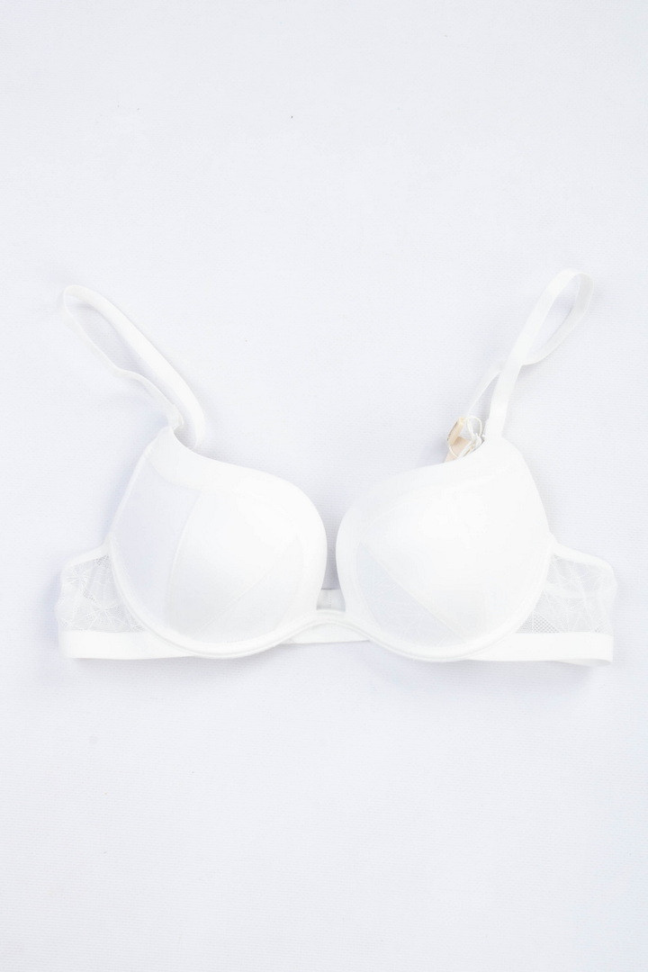 Бюстгальтер з мереживом на поролоні. Бретель – знімна, регулюється, спина – сітка. Застібка 2 гачки на 4 позиції.