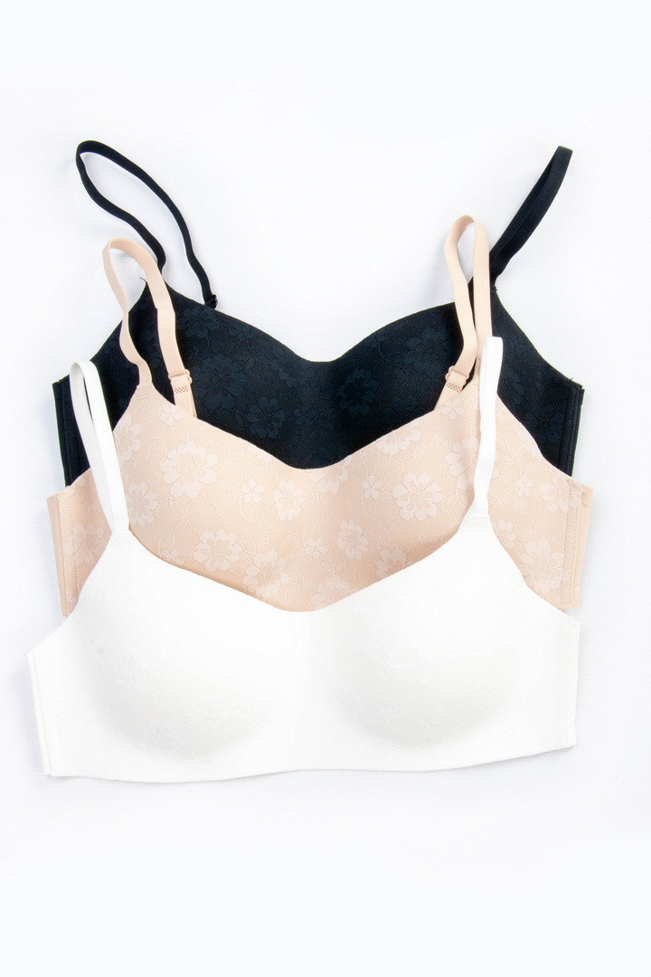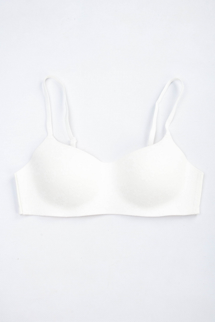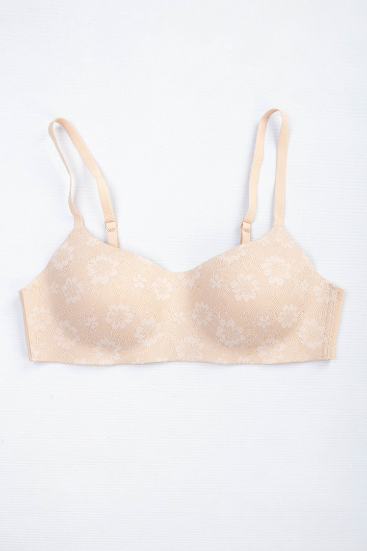 Легкий та комфортний безшовний бюстгальтер-бандо – ідеальний вибір для тих, хто цінує природну посадку та непомітність під одягом. Модель без кісточок забезпечує м'яку підтримку, а плоскі гумки вздовж пояса гарантують надійну фіксацію. Чашки прикрашені витонченим квітковим мереживом, яке начебто зливається з тонким поролоном, не випирає і не виділяється. Завдяки безшовній технології цей бюстгальтер залишається невидимим навіть під вбраннями, що облягають. Тонкий поролон. Бретели не знімні, з регулюванням по довжині. Застібка на 2 гачки та 4 подовження.
