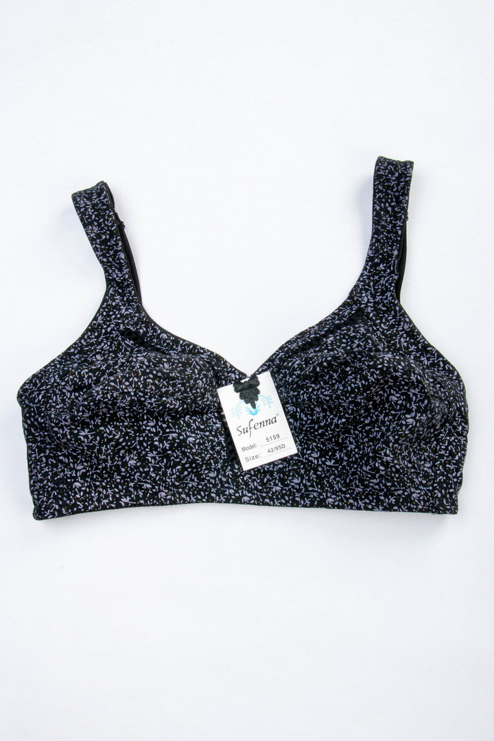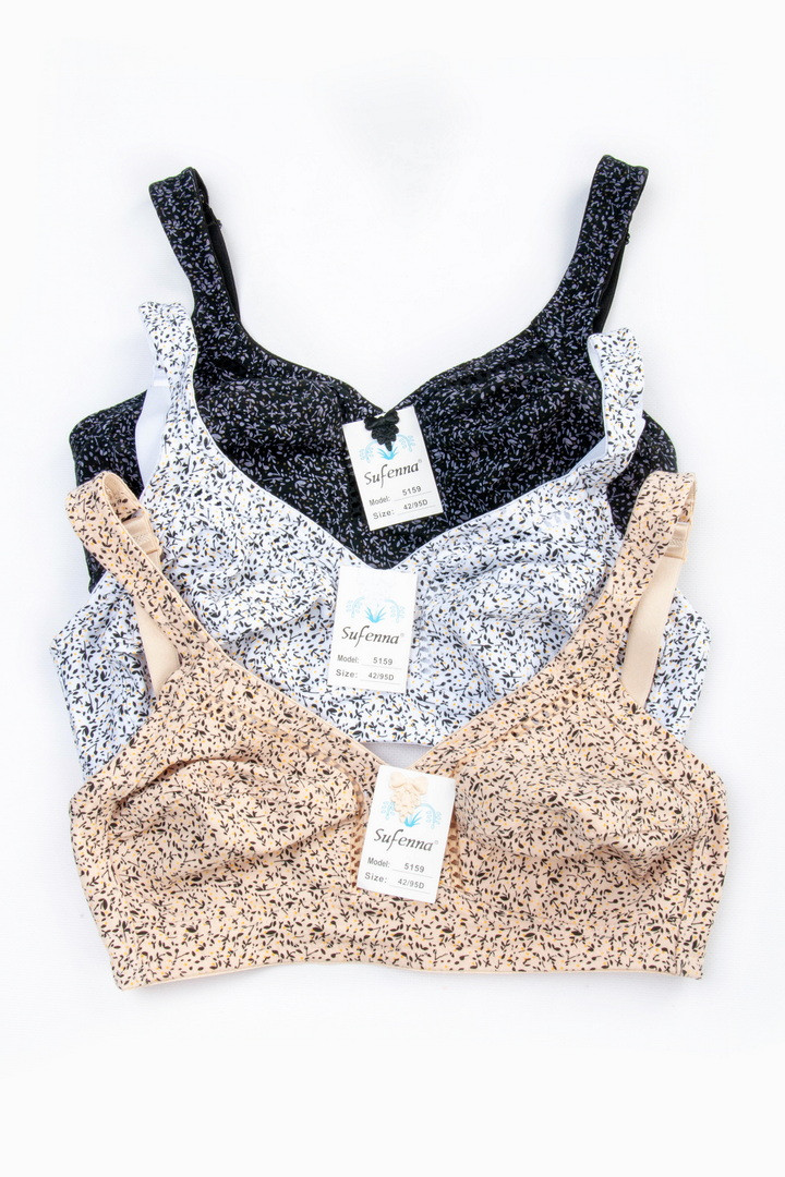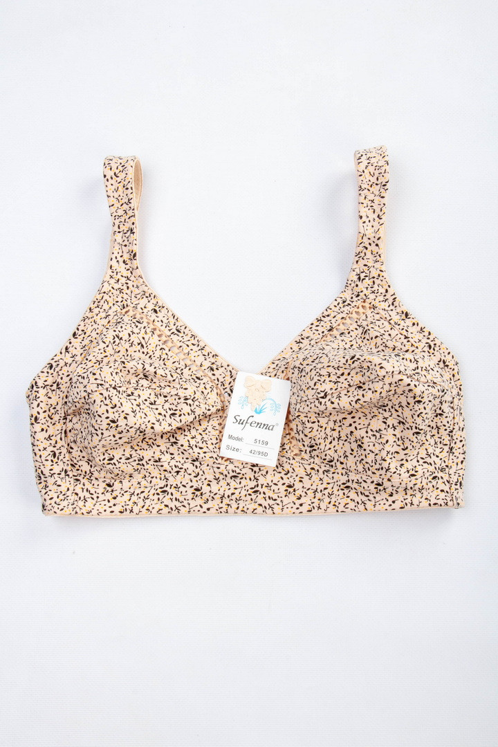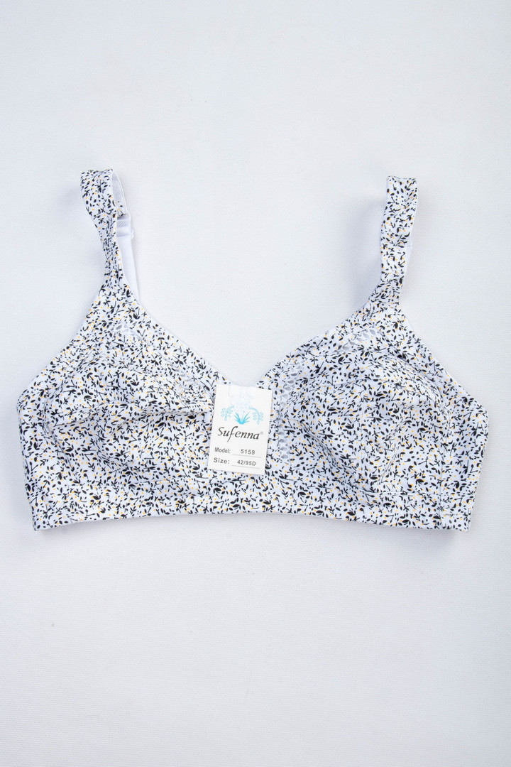 Бюстгальтер з м'якими чашками без поролону і кісточок забезпечує максимальний комфорт і природну посадку. Модель виконана з натуральної бавовни — приємної до тіла, дихаючої і добре тримає форму. Широкі незнімні бретелі з регулюванням по довжині рівномірно розподіляють навантаження. На спинці класична застібка - 3 гачки/3 рівні подовження.