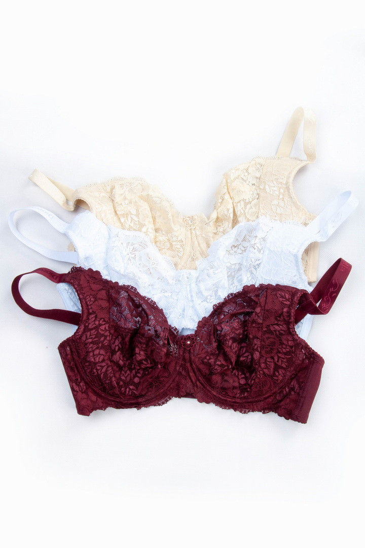 Ажурный бюстгальтер без поролона на косточке, бретель - несъемная, регулируется. Застежка 3 крючка на 3 позиции.